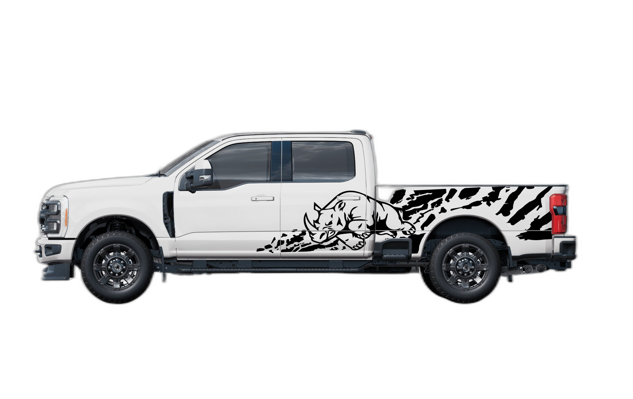 Add a tough, unconventional look to your Ford F250 with our Rhino Splash side decals. Designed for 4th and 5th Generation owners, this unique graphic kit adds a rugged, animal-inspired flair that highlights the strength and durability of your truck. Constructed from premium automotive-grade vinyl, these decals are engineered to endure harsh environments, resisting rain, UV rays, and road debris without peeling or fading. The splash design provides a dynamic, textured aesthetic that sets your truck apart from the crowd, making it perfect for both work-ready rigs and weekend warriors. Installation is designed to be simple for any DIY enthusiast, ensuring a professional, clean result. Whether you’re tackling the trails or cruising the highway, these decals showcase your F250’s personality with a bold, durable design. Upgrade your truck today with this high-impact, custom graphic set and embrace a look that’s as powerful as your Ford.