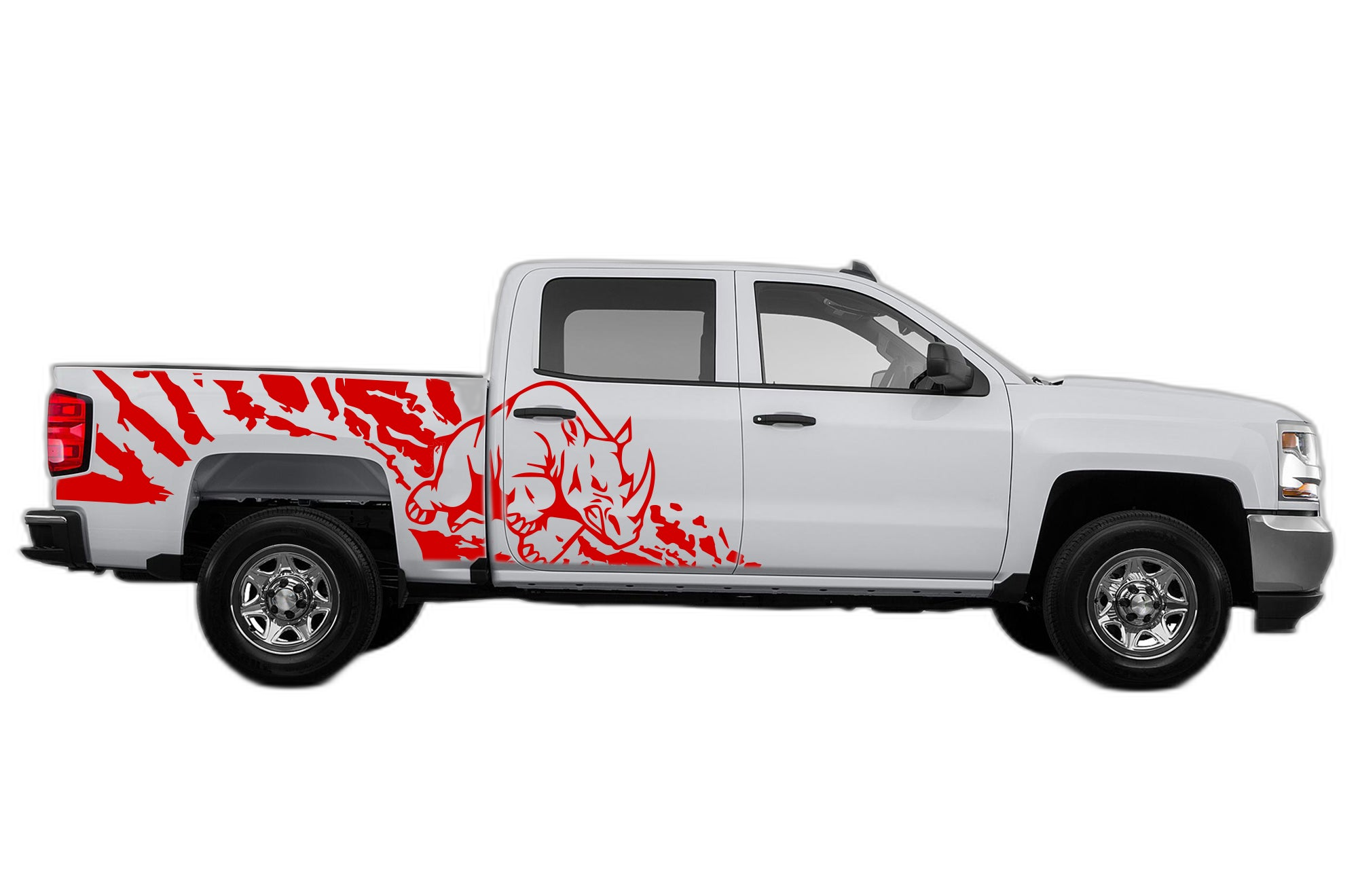 Bring an off-road inspired edge to your Silverado with these rhino splash side decals. These large-format graphics are designed to wrap across the truck’s side panels, providing a bold, adventurous look.
