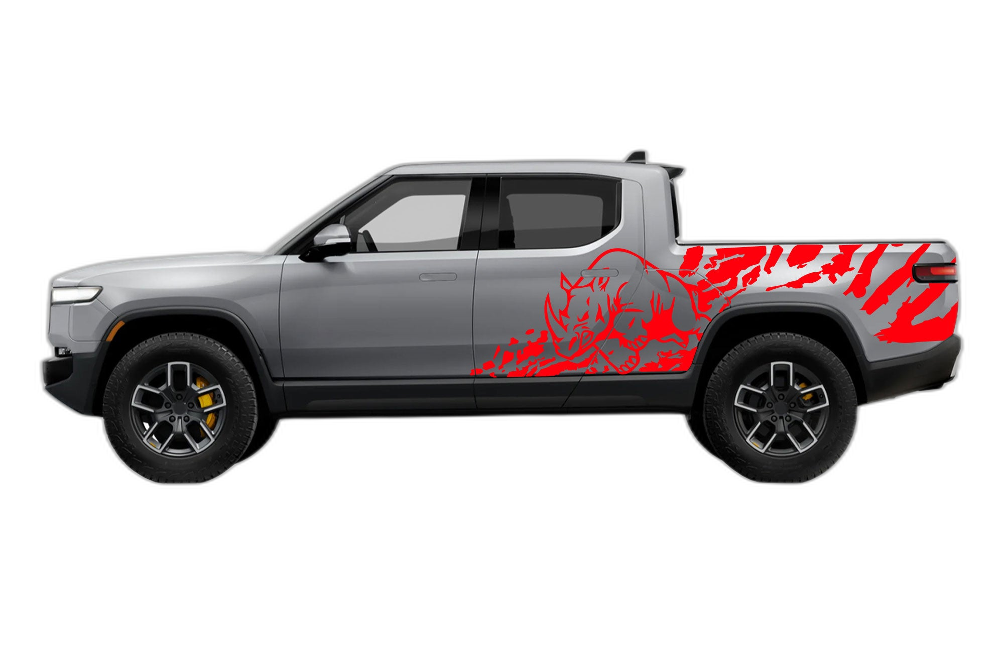 Celebrate the strength and capability of your Rivian R1T with our rhino splash side graphics, designed to embrace an adventurous lifestyle.