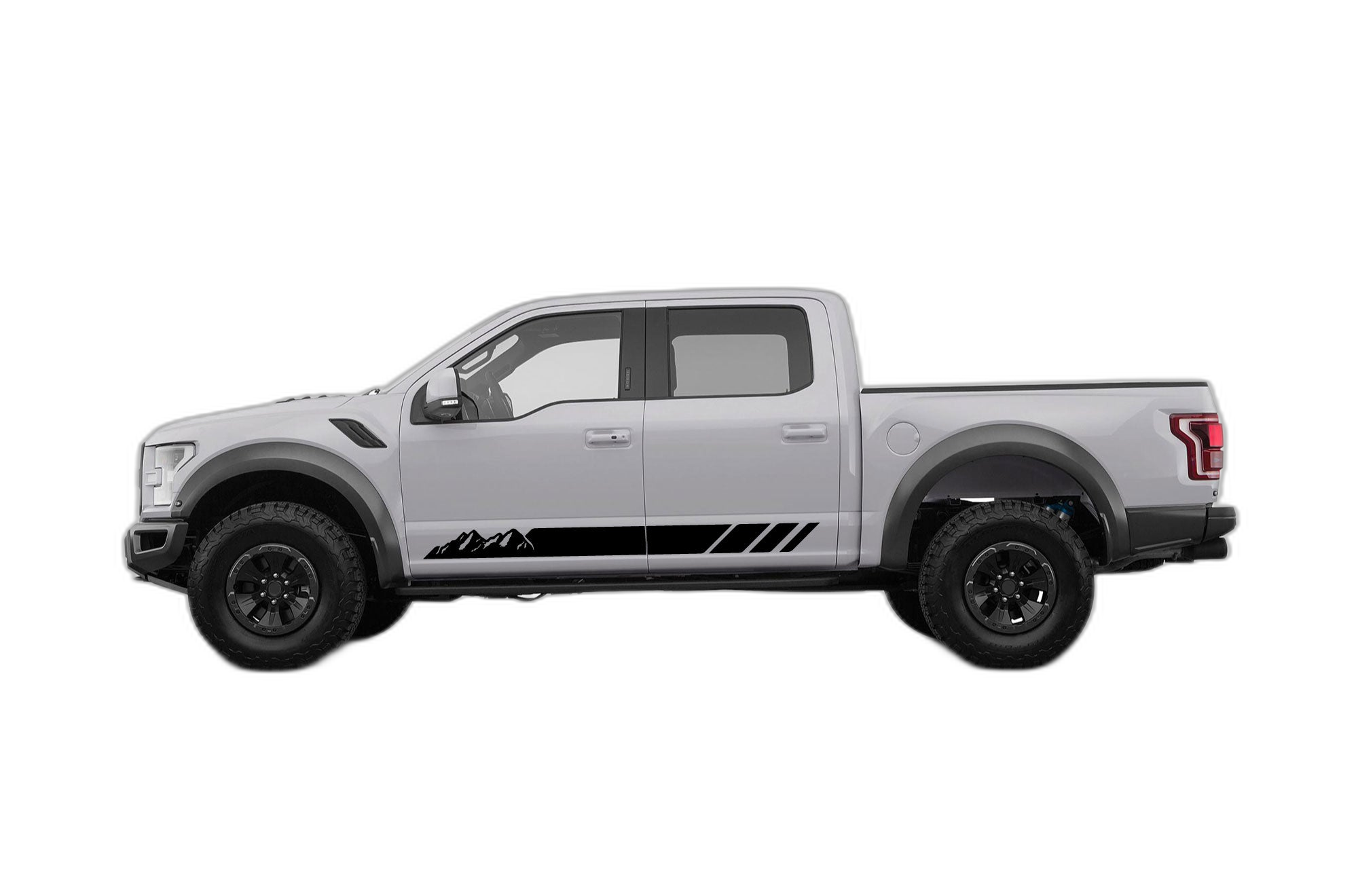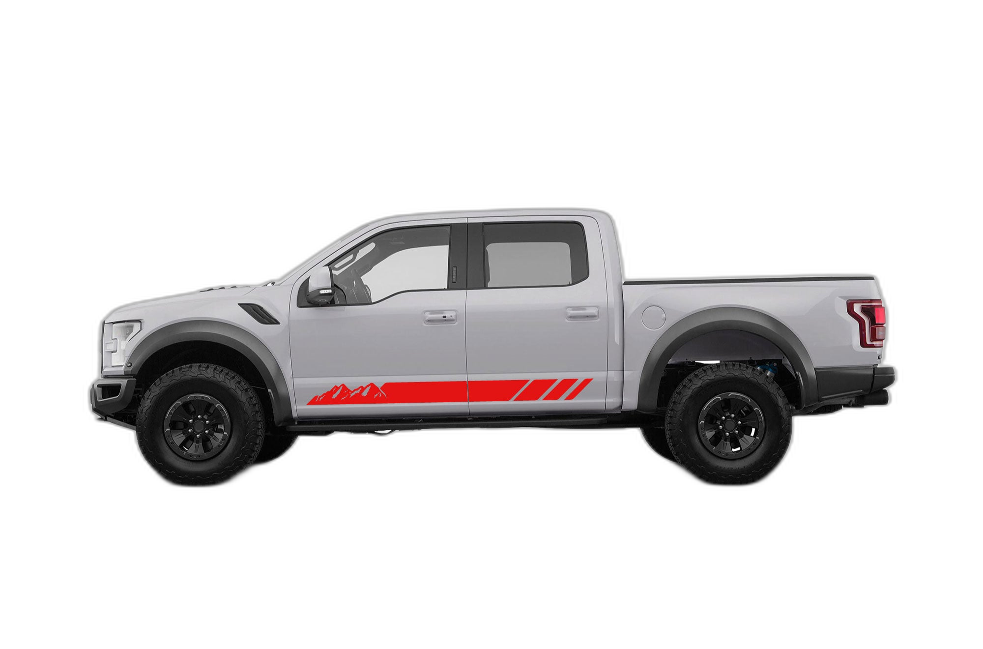 Bring the mountains to your build with these mountain-themed rocker panel stripes, tailored to fit the lower side body of your Ford F150 Raptor (2017-2020).