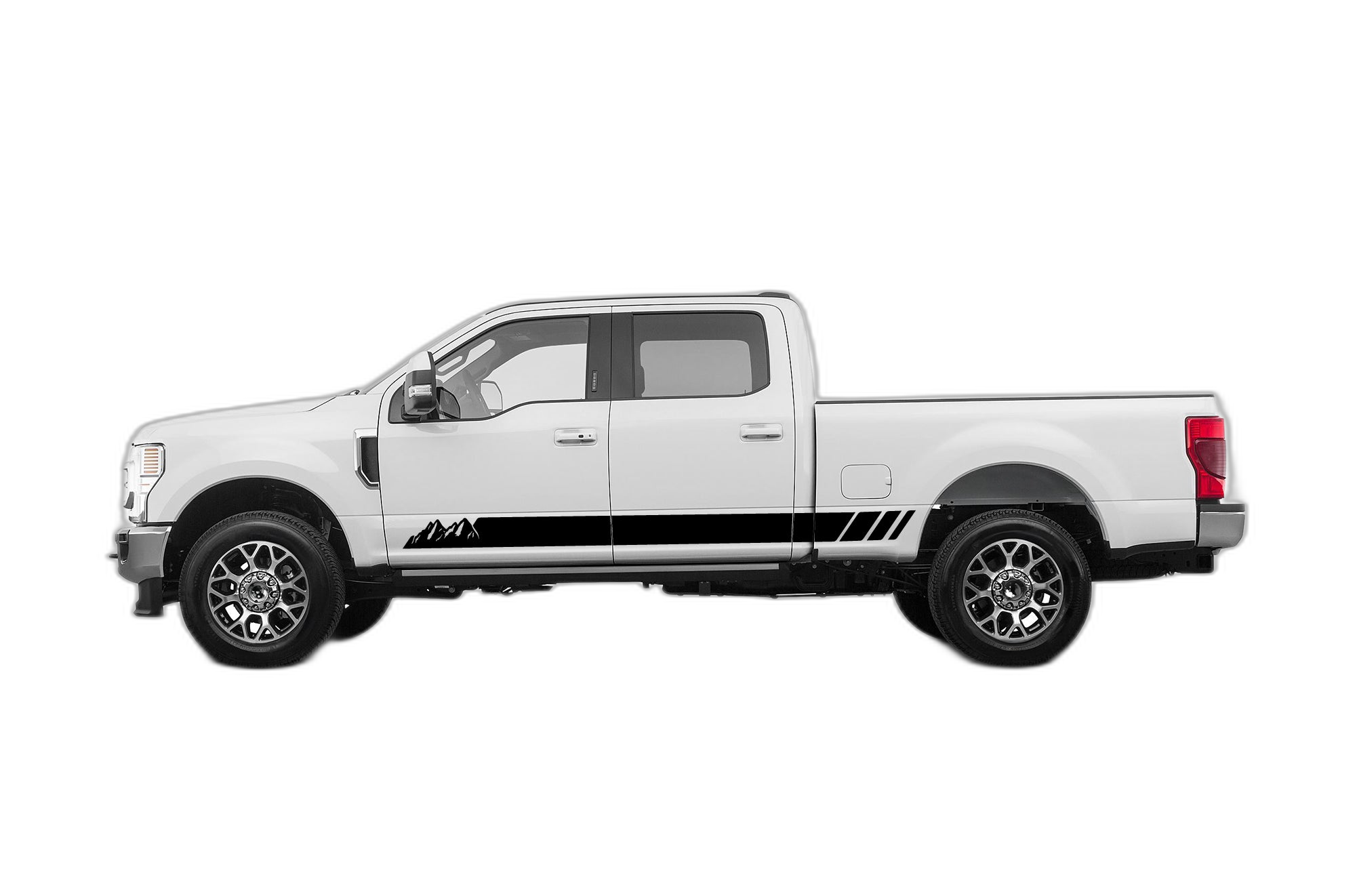 Combine rocker panel styling with mountain imagery. These decals are perfect for your Ford F250, adding an adventurous touch to the lower body of your vehicle for a custom outdoor-ready look.