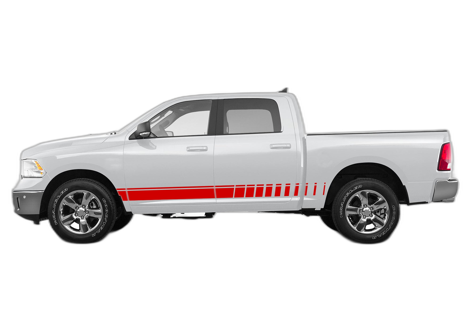 Rocker panel side stripes decals graphics compatible with Dodge Ram 2009-2018 adds a bold custom styling touch to your Dodge Ram with a clean motorsport-inspired decal look. This design is intended for the listed fitment and works well for drivers who want sharper side profile styling without a full wrap. The graphic is suited for enthusiasts who value a strong visual upgrade, easy maintenance, and a finish that stands out on the street or at events. Always confirm your vehicle generation and prepare the surface correctly before installation for the best result. This product is a great option for refreshing the appearance of your build while keeping the install focused, practical, and visually aggressive.