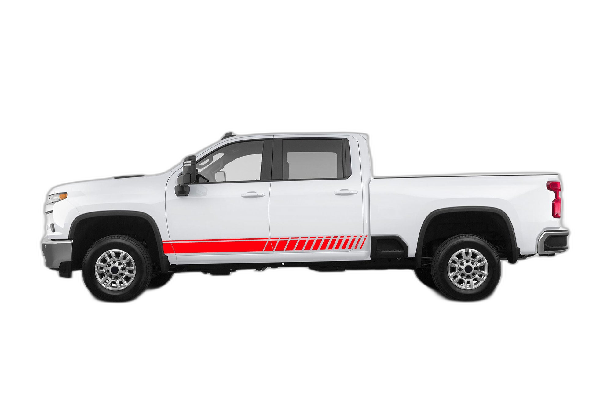 These stripes offer a subtle yet effective way to customize your Silverado. Whether for a work truck or a performance build, these graphics add a touch of professional style to your rocker areas.