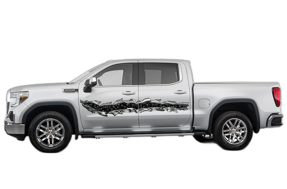 Add an aggressive, weathered look to your 5th Generation GMC Sierra with these scratch-themed side decals.