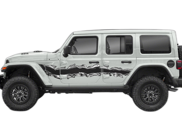 Add an edge to your off-road machine with these scratch-style side decals. These graphics are specifically crafted for the Jeep Wrangler JL, offering a gritty, adventurous look that stands out.