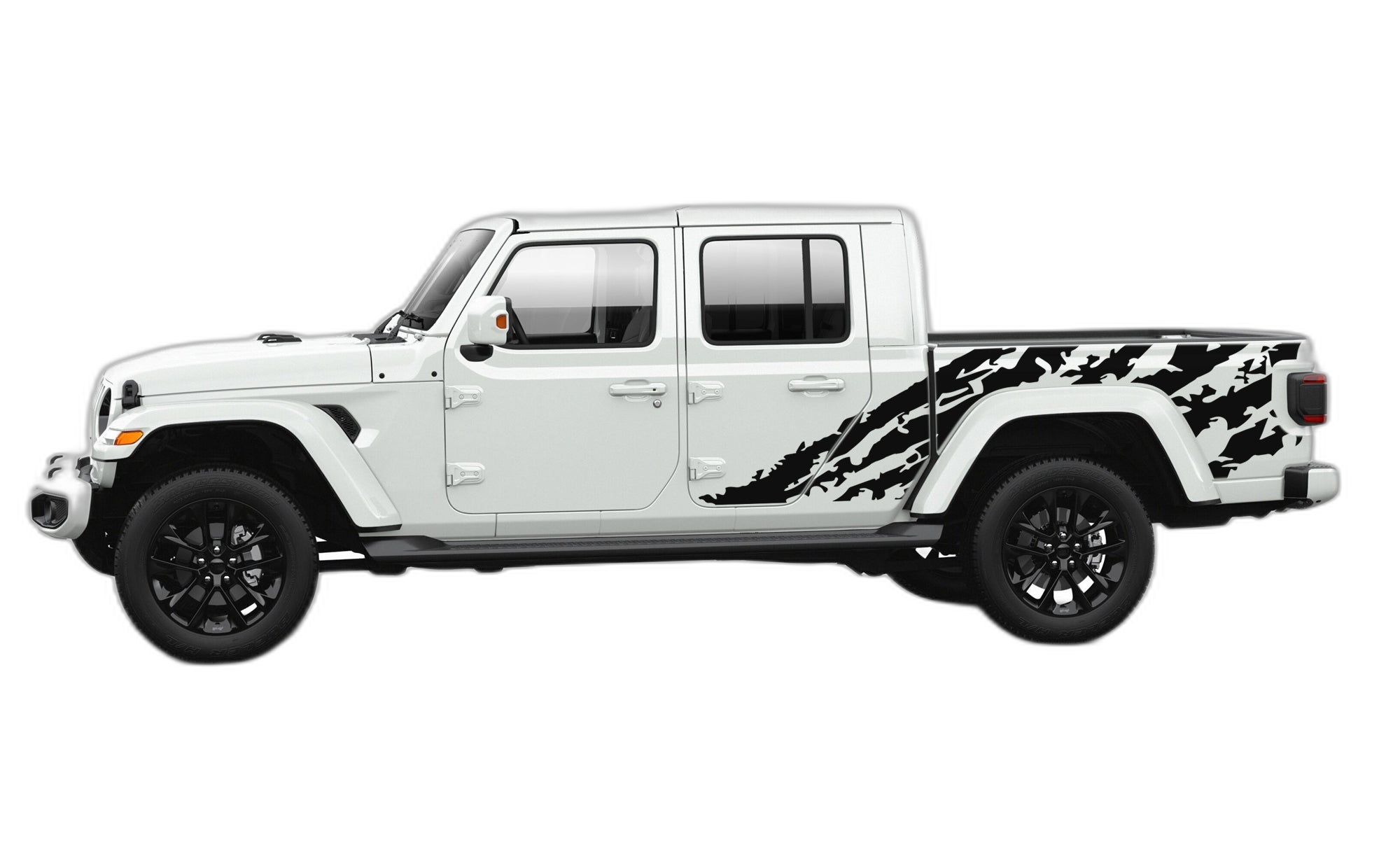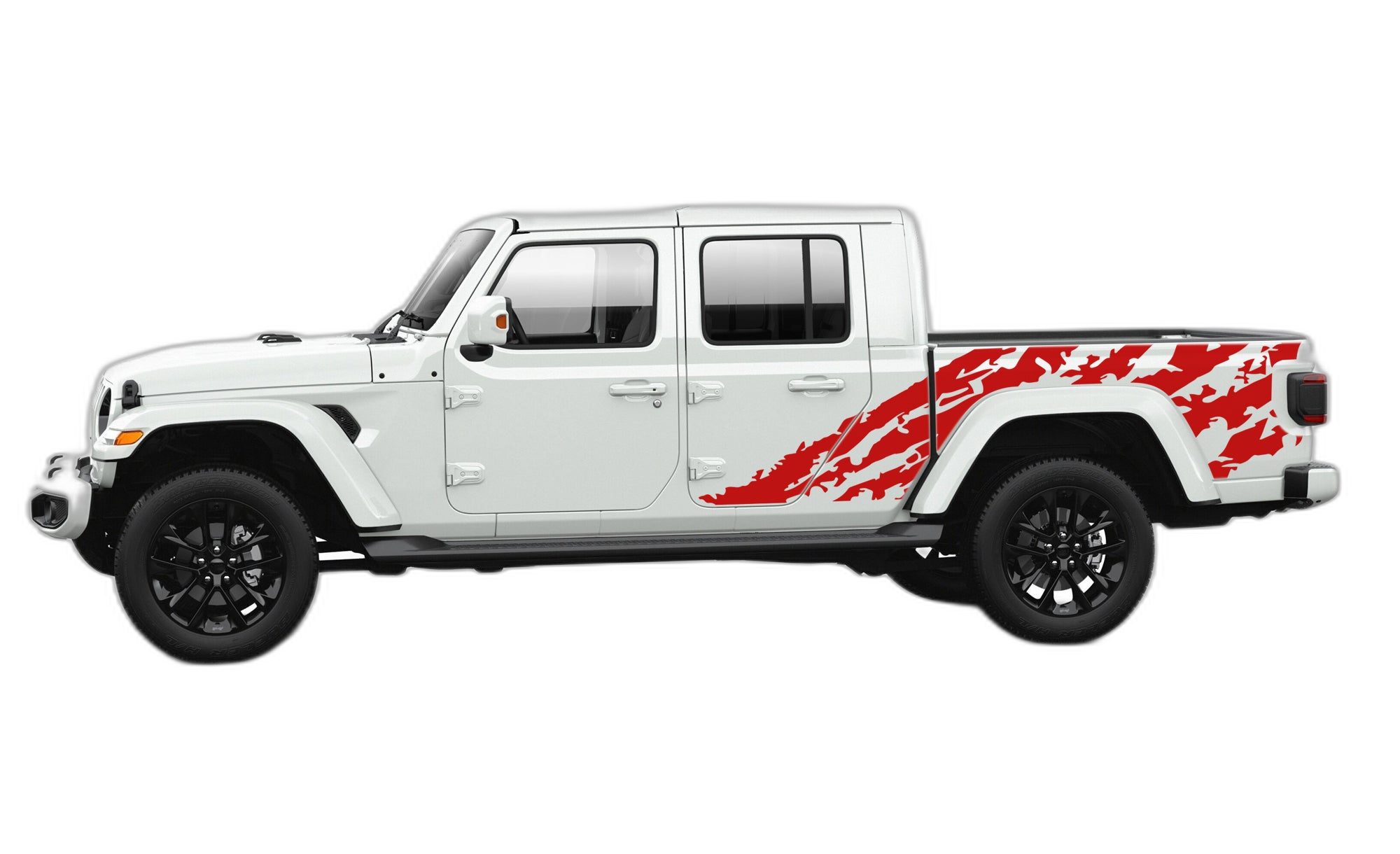 Add an aggressive, high-energy look to your Jeep Gladiator JT with our shredded side-back graphics. This design conveys a sense of speed and intensity, perfect for those who want their truck to reflect their adventurous and fierce nature. Crafted from top-tier, automotive-grade vinyl, these decals are built to endure the harshest environments, including intense UV exposure, trail mud, and high-pressure washing, without losing their sharp, shredded detail. The precision-cut design conforms seamlessly to your Gladiator’s body lines, providing a professional, factory-installed look that is easy to apply at home. If you want a modification that combines artistic flair with rugged, long-lasting performance, these shredded-effect decals are the perfect choice. They are built to last through thousands of miles of driving, ensuring your Jeep stays looking sharp and aggressive. Elevate your truck’s exterior with an accessory that blends high-impact style with superior material durability for a look that stands out in any crowd.