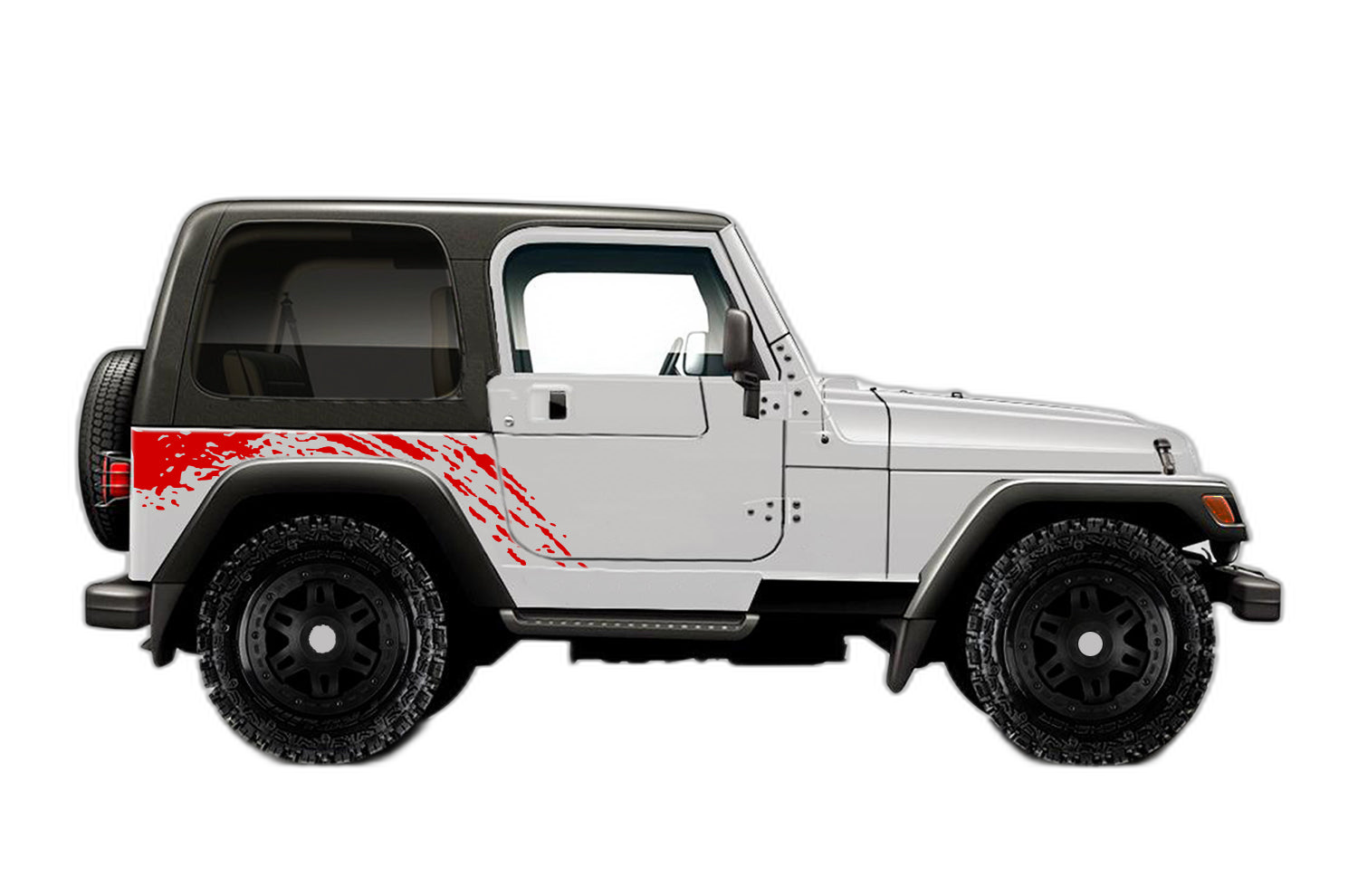 Side back splash decals graphics compatible with Jeep Wrangler TJ