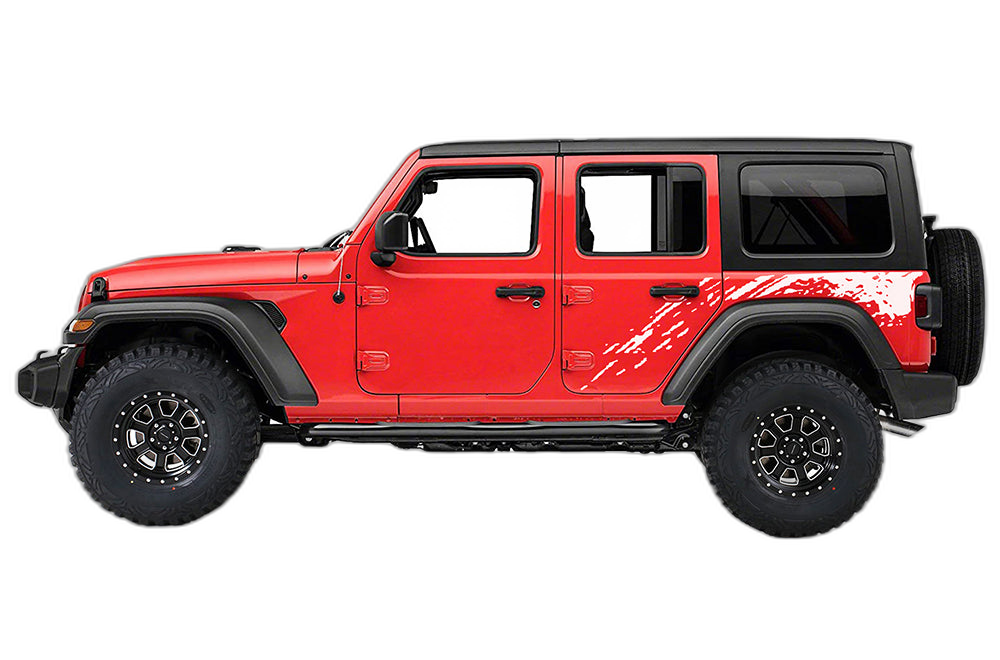 Infuse your Wrangler with energy using our side back splash graphics, compatible with Jeep Wrangler JL, JK, and TJ generations. This sharp, energetic design creates a sense of motion and ruggedness, focusing on the rear side panels to add a custom dimension to your Jeep’s profile. It’s a modern way to break up the color of your side panels and give your vehicle a distinct, trail-ready character. We utilize high-performance, outdoor-stable automotive vinyl that is built to endure mud, grit, and extreme weather, ensuring the splash pattern remains clean and vibrant. Precision-cut to flow with the body lines of the Wrangler, these decals are easy to apply and provide a professional, long-lasting finish. Whether you are an off-road warrior or a daily driver, these splash graphics are the perfect way to inject some personal style into your Jeep. Durable, bold, and easy to maintain, they are the ideal upgrade for any Wrangler enthusiast.