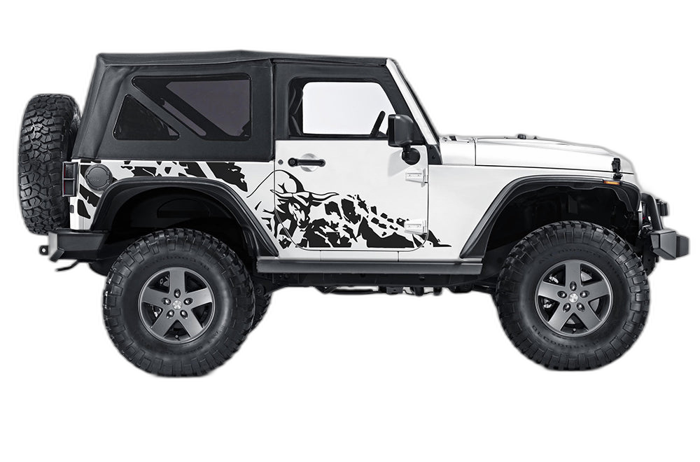 Bring an aggressive, wild look to your 2-door Wrangler JK with these bull splash side decals. Designed to capture the spirit of off-roading, these graphics add an intense, high-impact aesthetic that makes your Jeep look ready for any mud pit or rocky climb. Crafted from high-grade, outdoor-rated vinyl, these decals are engineered to endure the harshest conditions—including debris, water, and UV rays—without fading or peeling. The precision-cut design ensures a perfect fit for the 2-door JK’s panels, providing a seamless, professional finish. Installation is easy, allowing you to quickly update your exterior with a custom, high-energy look. Perfect for those who want their Wrangler to stand out as a true off-road beast. Durable, high-quality, and visually stunning, these bull splash decals are the ultimate style upgrade for your 2-door JK. Get the tough look you’ve been searching for and show off your passion for adventure with this high-durability graphic kit.