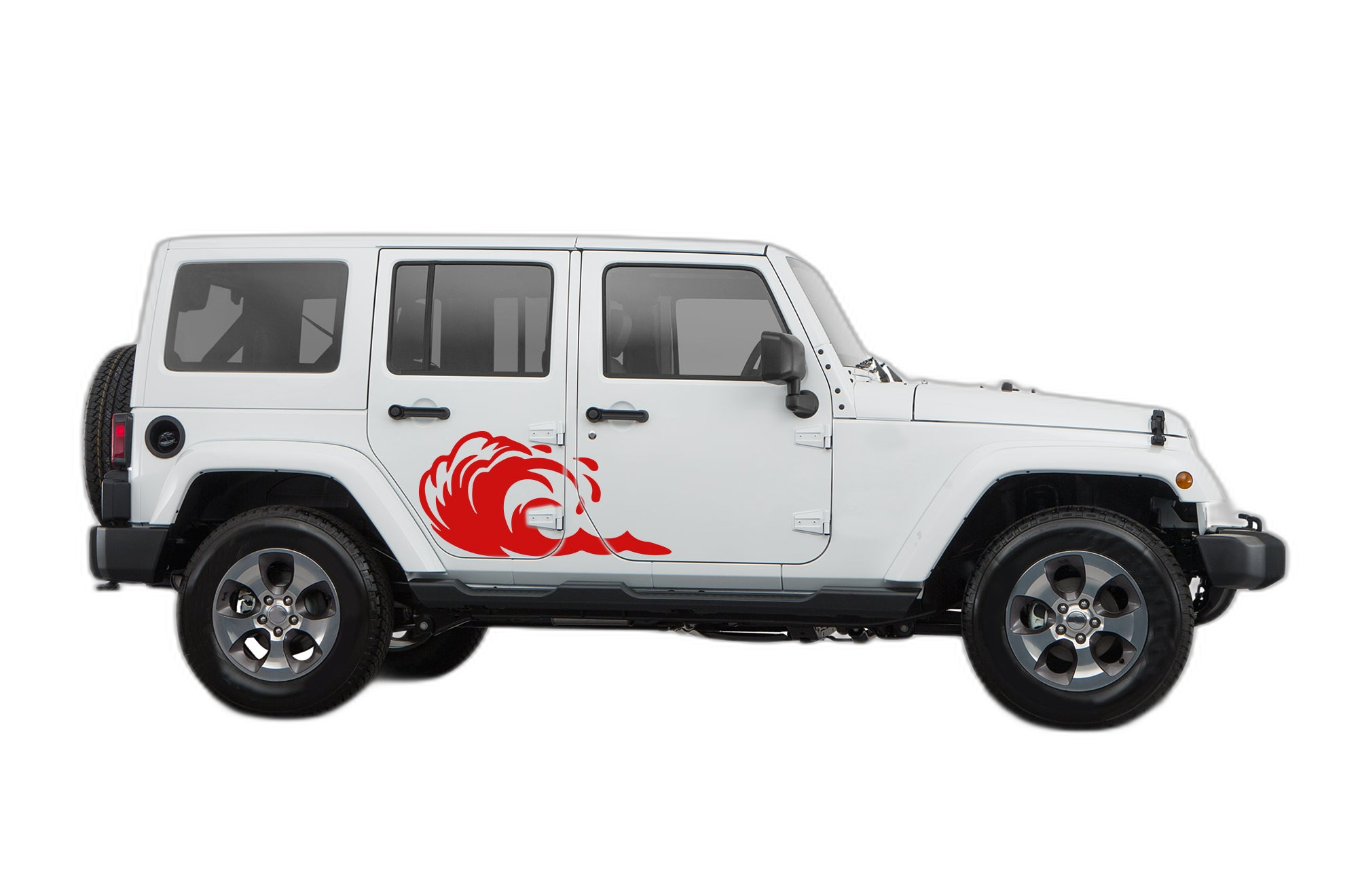 Create a sense of constant motion and style with our side door wave decals. These graphics are specifically designed to follow the contour of the Jeep Wrangler JK, adding a sleek and modern feel to your vehicle’s exterior.