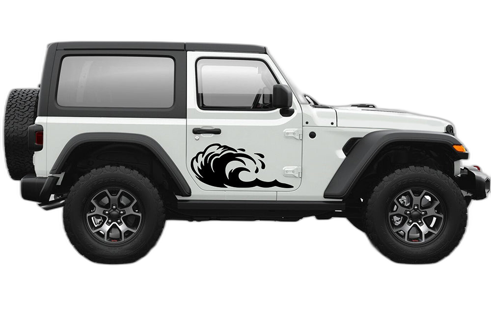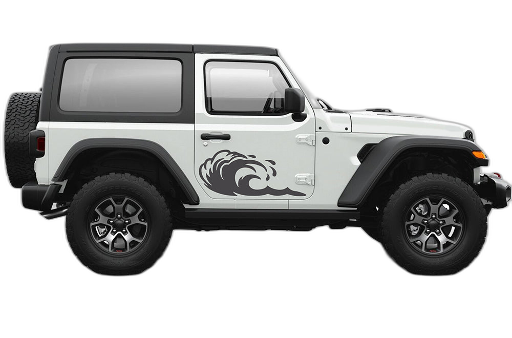 Add a sense of motion and adventure to your 2-door Jeep Wrangler JL with these stylish side door wave graphics. Inspired by the off-road spirit and the iconic Jeep ‘wave,’ these decals feature a dynamic design that follows the lines of your vehicle perfectly. Crafted from high-performance automotive vinyl, these graphics are built to survive the harshest outdoor conditions, from dusty desert trails to highway speeds. The UV-resistant properties ensure the design keeps its crisp lines and vibrant color for years. Our decals are precision-cut for an effortless, bubble-free application on your door panels. Whether you want to accentuate the sporty silhouette of your JL or add a unique custom flair, these wave graphics are the ideal solution. Make your 2-door Wrangler stand out from the crowd with a design that perfectly captures the freedom of the open road and your passion for your Jeep.