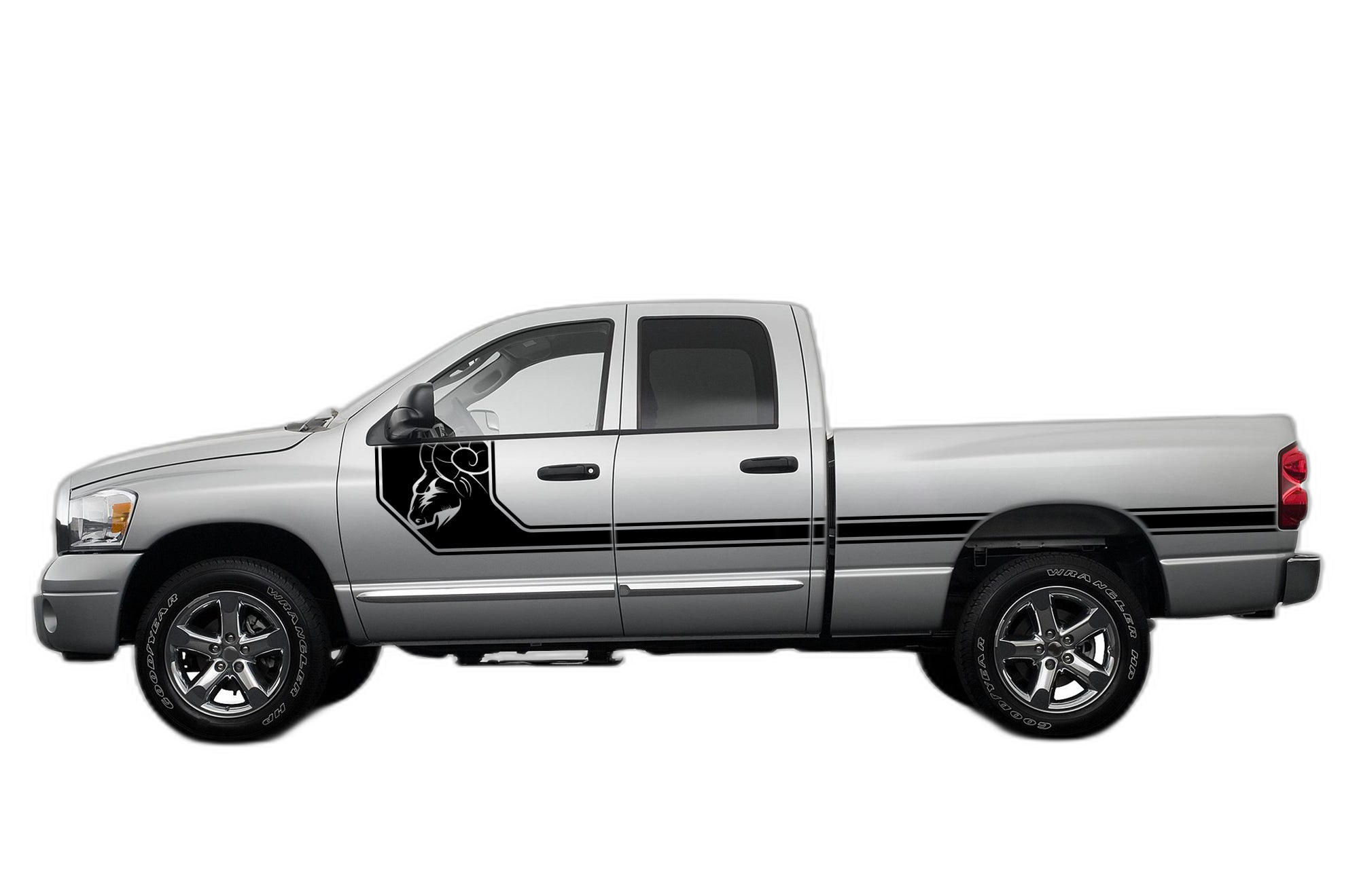 Enhance your 3rd Generation Dodge Ram with these branded side line stripes. These decals integrate the Ram identity into a sleek, linear design that runs along the side of your vehicle.