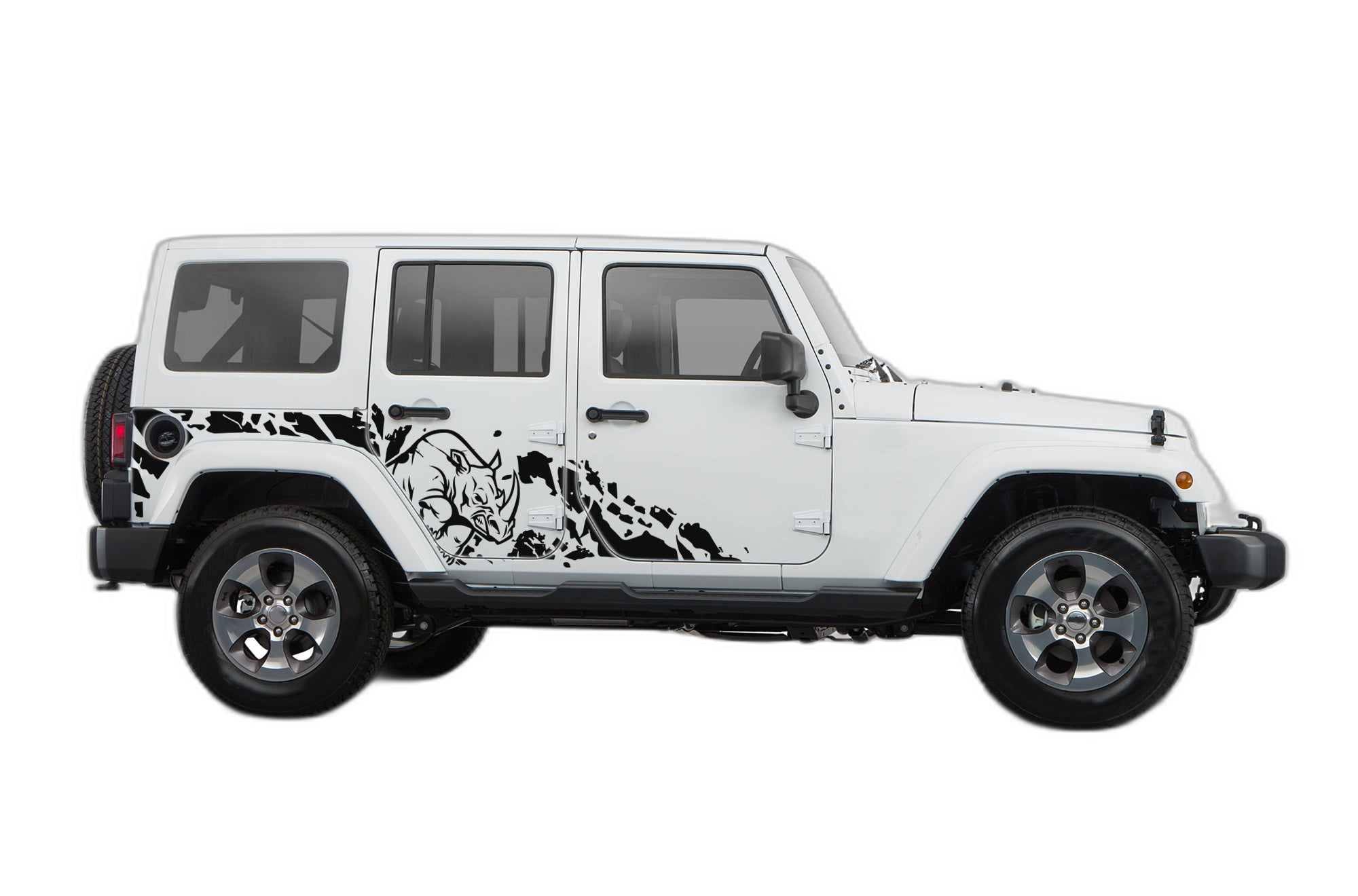 Bring a splash of the wild to your Jeep Wrangler JK Unlimited with our rhino-themed side splash decals. This design is built for the adventurous soul who wants to show off their Jeep’s rugged capabilities. The unique splash and rhino motif creates a dynamic look that accentuates the JK’s bold side panels. Built from high-performance, weather-proof automotive vinyl, these decals are engineered to handle the toughest trail debris, mud, and extreme weather without peeling or fading. The precision-cut shapes ensure a perfect fit for the JK’s body lines, making the installation process smooth and satisfying. Whether you are driving through the brush or just heading to the store, these decals provide a distinct, personalized look that sets your Jeep apart. Protect your paint from minor scratches while adding a touch of personality with this high-quality, long-lasting graphic kit that is built to endure every off-road adventure.