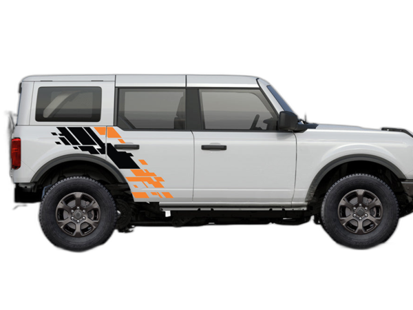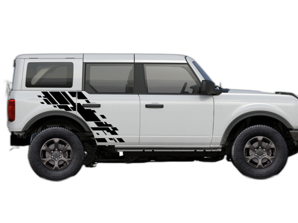 Enhance the profile of your Ford Bronco or Bronco Sport with our upgraded side graphics. This kit is designed to provide a modern, custom look that accentuates the vehicle’s unique design features. Crafted from long-lasting, high-performance vinyl, these side decals are highly resistant to weathering, UV radiation, and daily road wear, ensuring they maintain their crisp, vibrant finish for years. The precision-cut decals are designed for a perfect fit, providing a seamless look that elevates your vehicle’s aesthetic instantly. Whether you are looking to make your Bronco stand out on the trail or the street, these side graphics offer a perfect balance of style and durability. Easy to install and built to survive the elements, they are the ideal modification for any Bronco owner looking to add a personal touch. Invest in our premium side graphics today to give your vehicle the upgraded, polished, and adventurous look it deserves.