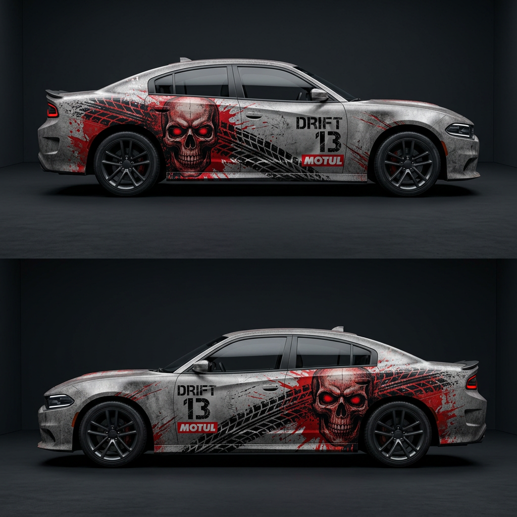 💀⚙️ Skull & Saw Blade Car Wrap – Industrial Power