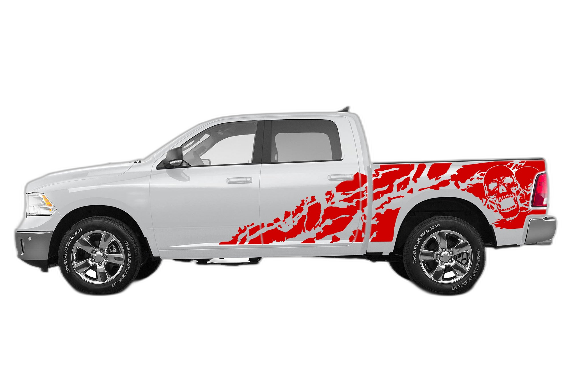 Skull shredded decals graphics compatible with Dodge Ram 2009-2018 adds a bold custom styling touch to your Dodge Ram with a clean motorsport-inspired decal look. This design is intended for the listed fitment and works well for drivers who want sharper side profile styling without a full wrap. The graphic is suited for enthusiasts who value a strong visual upgrade, easy maintenance, and a finish that stands out on the street or at events. Always confirm your vehicle generation and prepare the surface correctly before installation for the best result. This product is a great option for refreshing the appearance of your build while keeping the install focused, practical, and visually aggressive.