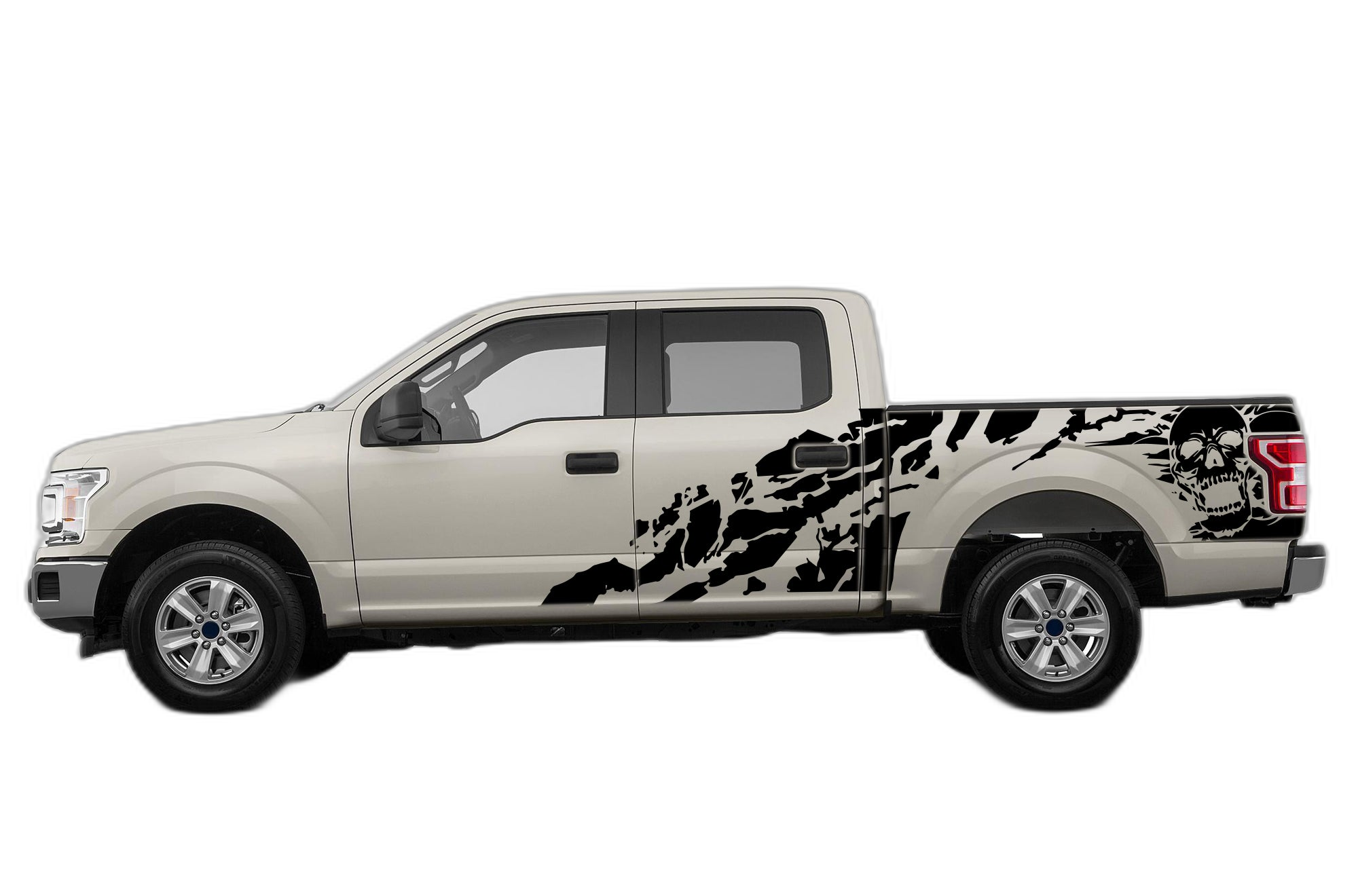 Give your truck an edgy, custom appearance with our skull shredded graphics for the 2015-2020 Ford F150. This bold design incorporates a skull motif with a shredded aesthetic, perfect for those who want their vehicle to have an intimidating, unique look.