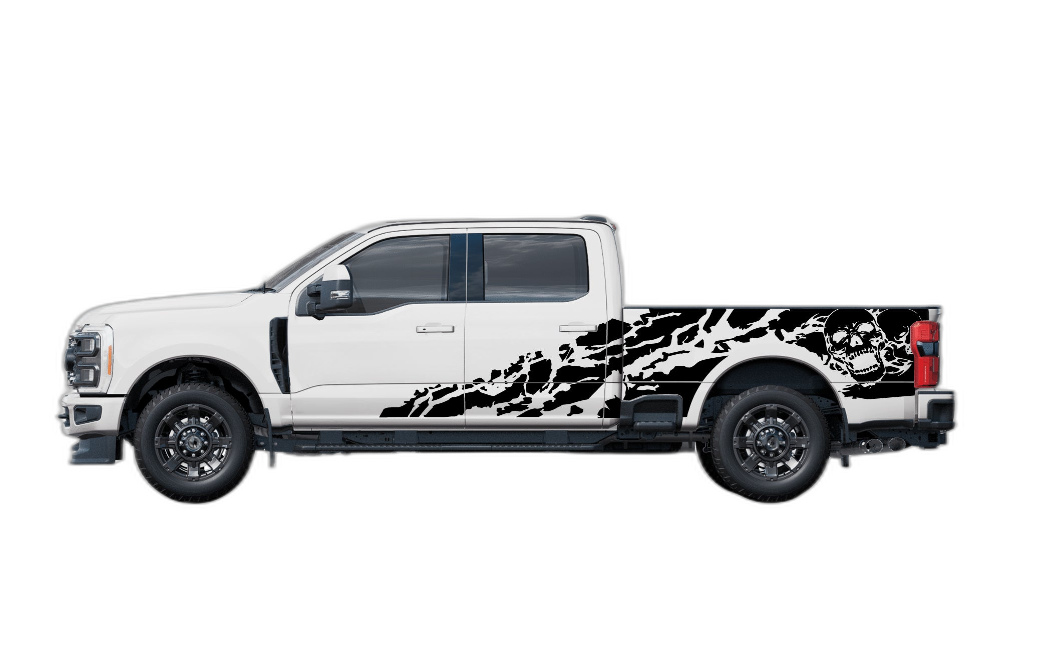 Inject some attitude into your Ford F250 with our skull shredded side decals. Ideal for 4th and 5th Gen F250 models, these graphics deliver a fierce, edgy look that demands attention. Whether you are building a custom workhorse or a trail-ready monster, these decals are the perfect finishing touch. Crafted from durable automotive vinyl, the graphics are resistant to scratching, fading, and peeling, ensuring your truck looks sharp through every season. The precision-cut design allows for a smooth, perfect fit along your truck’s body lines, making it easy for you to achieve a professional-grade appearance. If you are looking to enhance your truck’s exterior with a unique and bold aesthetic, our skull shredded graphics are the perfect choice. Built for durability and style, these decals are made to last and guaranteed to make your Ford F250 stand out on the road.