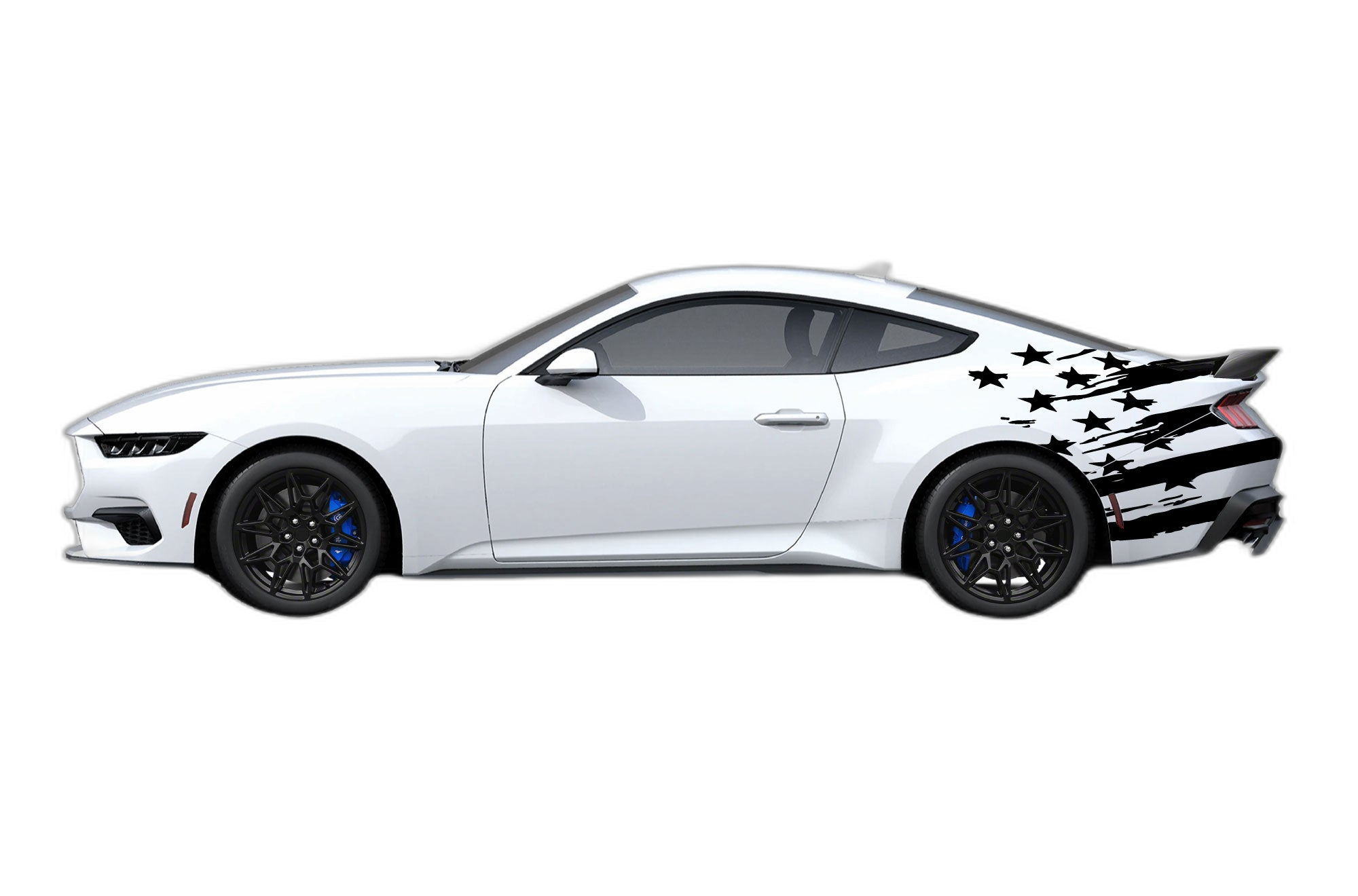 Upgrade your 7th generation Ford Mustang with our tattered flag back graphics. This design features a distressed patriotic theme that brings a unique, rugged edge to your vehicle’s rear end, setting it apart with a custom, high-detail finish.
