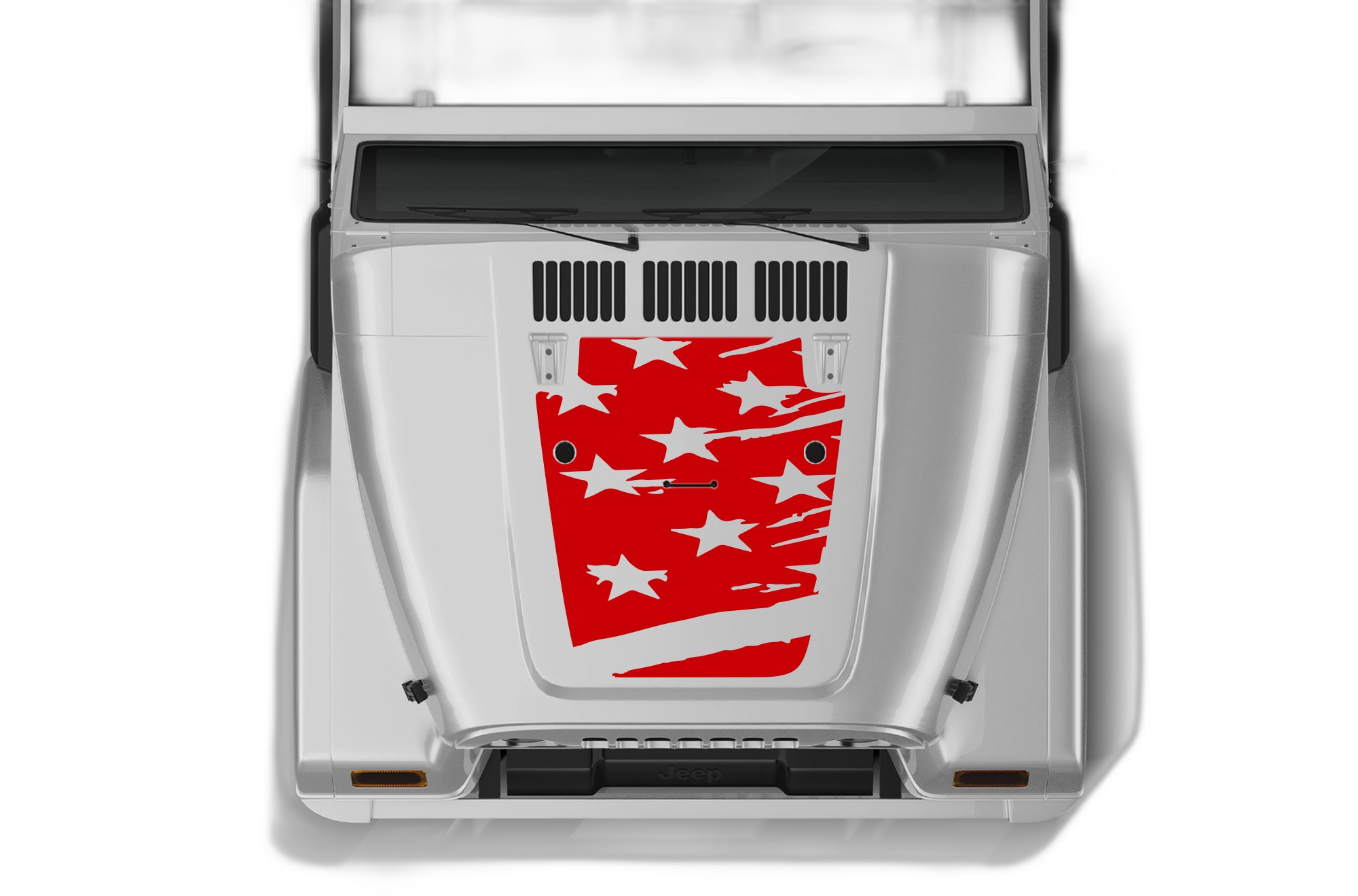 Enhance the aesthetic of your classic Jeep Wrangler TJ with our tattered US flag hood decal. This design offers a rugged, worn-in look that perfectly complements the timeless appeal of the TJ generation. Crafted from high-quality, outdoor-grade vinyl, these decals are engineered to stand up against the elements, including harsh sun, rain, and mud, ensuring they remain vibrant and sharp over time. The precision-cut matches the unique dimensions of the TJ hood, providing a professional and clean custom appearance that elevates your vehicle’s front profile. Perfect for any Wrangler owner who values American heritage and off-road ruggedness, this decal is a simple but effective upgrade. Installation is straightforward and provides long-lasting, durable results. Make your Wrangler TJ stand out on the trail or the street with this patriotic and durable graphic that reflects your dedication to your favorite off-road platform.