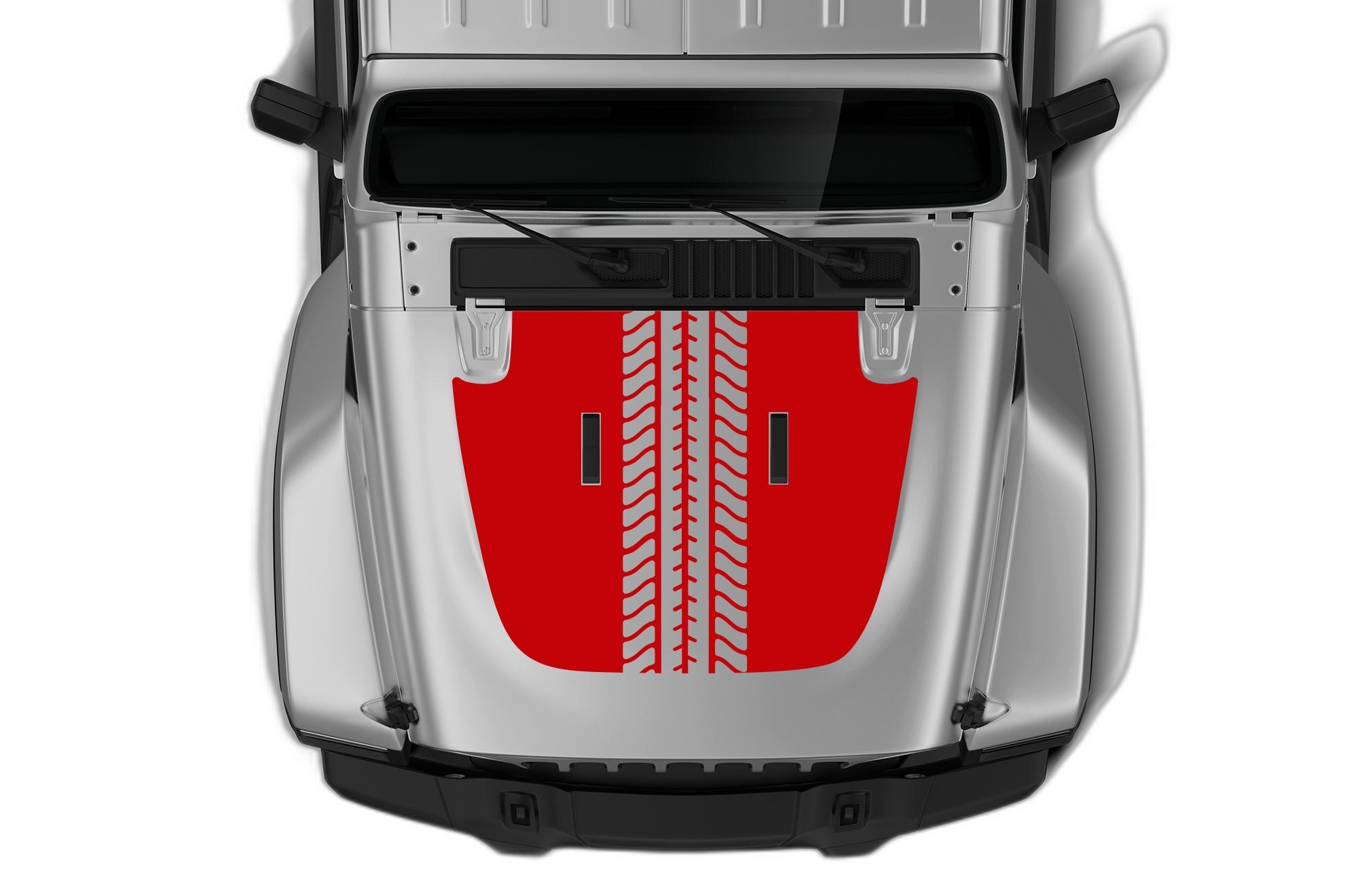 Give your Wrangler JL an industrial and rugged look with our tire truck-style hood graphics. This design is perfect for those who want to give their Jeep a bold, functional appearance.