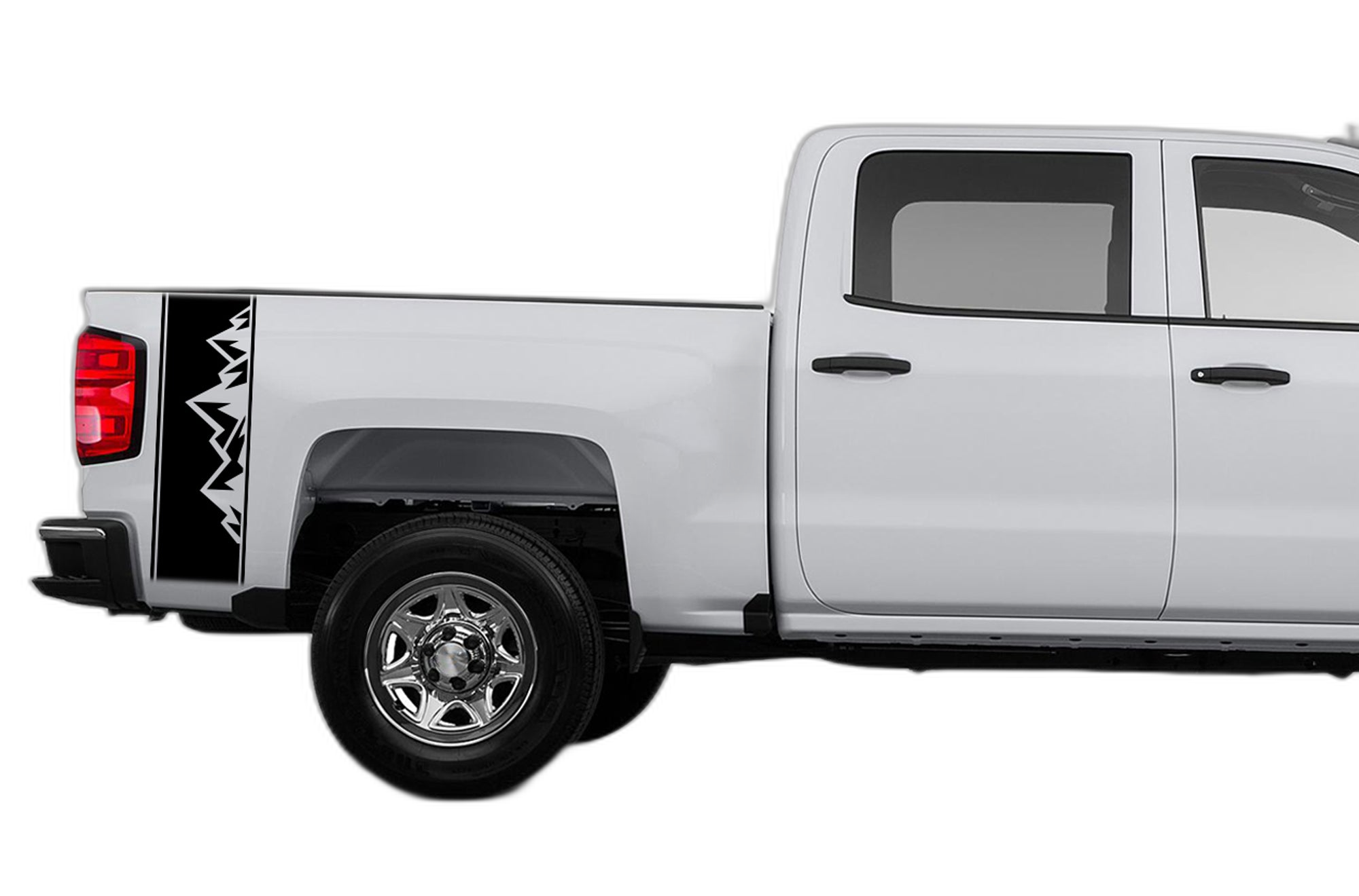 Capture the essence of the trail with these mountain-themed bed side stripes. These decals run along the side of your bed to create a dynamic and rugged aesthetic for your 2014-2018 Silverado.