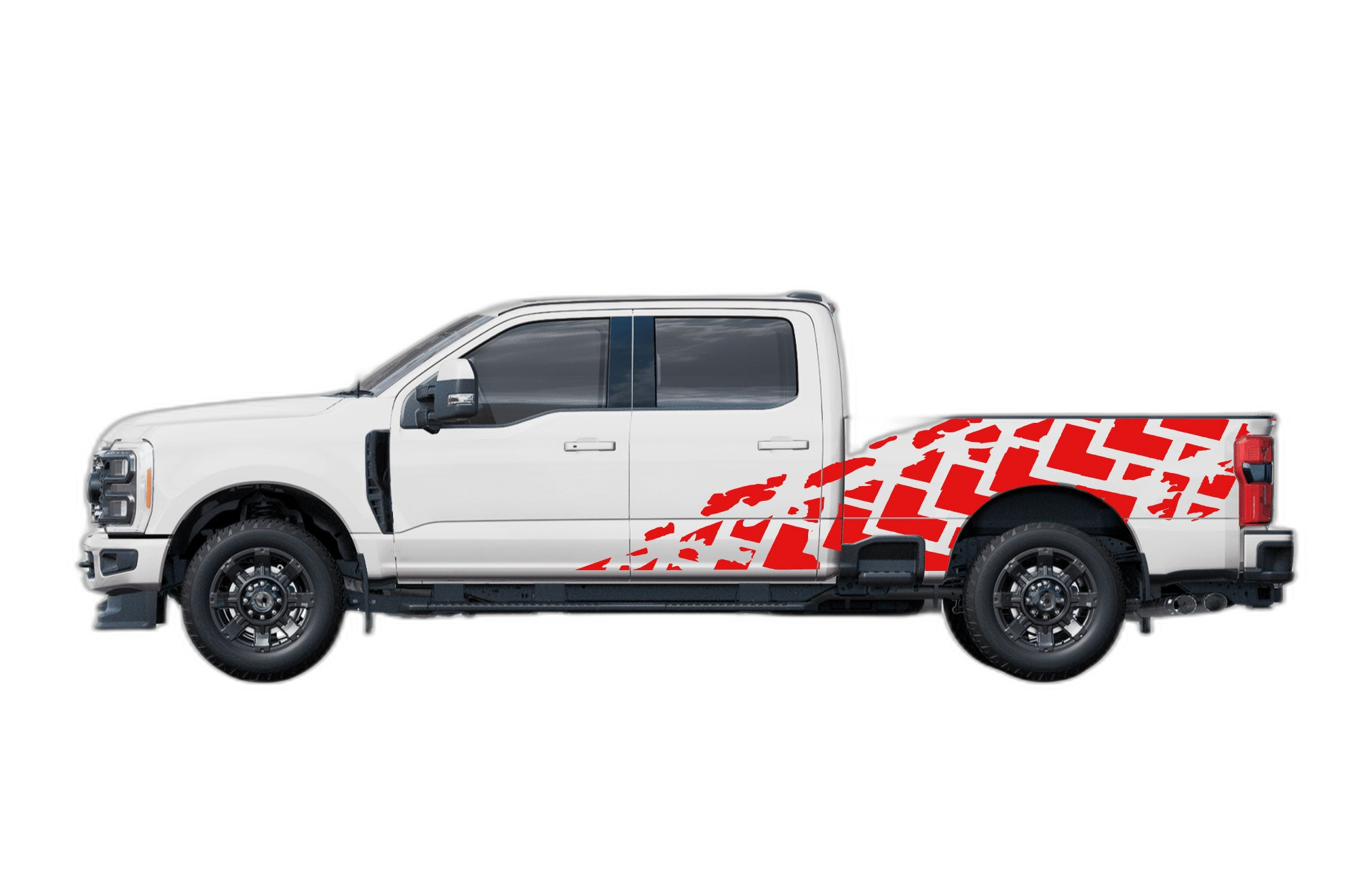 Show off your truck’s off-road capabilities with our Tire Truck side graphics, designed for the 4th and 5th Generation Ford F250. This graphic kit features a detailed tire-tread pattern that perfectly captures the spirit of off-roading and rugged performance. Crafted from premium, UV-resistant automotive vinyl, these decals are built to withstand the toughest conditions, from thick mud to harsh sunlight, without losing their detail or integrity. The design integrates seamlessly with your truck’s body panels, offering a bold, custom look that stands out in any crowd. Installation is easy and bubble-free, making it a great way to personalize your ride. Whether you’re heading to the job site or exploring the trails, these decals give your F250 an aggressive edge that commands attention. Upgrade your vehicle today with our high-quality Tire Truck graphics and embrace a look that’s as capable as your Ford.