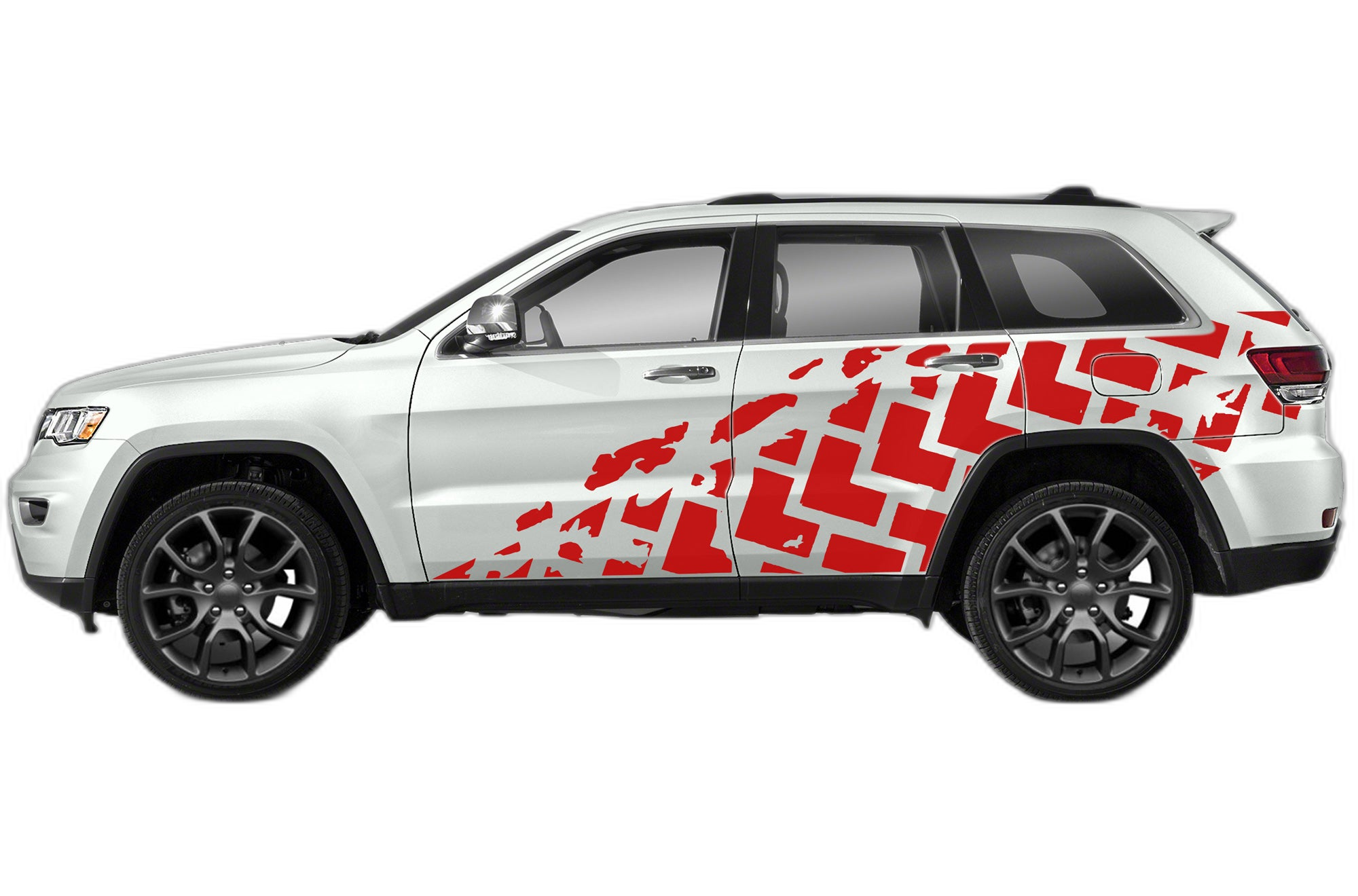 Give your 2011-2021 Jeep Grand Cherokee WK2 a rugged, trail-ready aesthetic with our tire-track side graphics. This design mimics the tread patterns of aggressive off-road tires, signaling that your SUV is built to handle the dirt and the mud. Spanning across your side panels, these graphics add depth and energy to your Grand Cherokee, making it stand out as a vehicle built for adventure. Manufactured from top-tier, weather-resistant automotive vinyl, these decals are built to withstand the elements, ensuring they remain bold and sharp despite intense UV exposure and road grime. The precision-fit design allows for a clean installation that follows your SUV’s lines. Durable, stylish, and perfect for the owner who wants to showcase an outdoor lifestyle, these side graphics are the ultimate way to inject personality into your Grand Cherokee build.