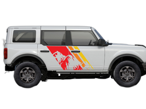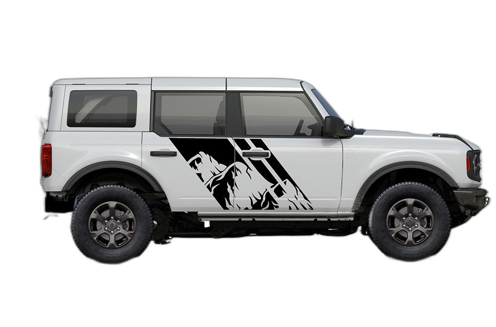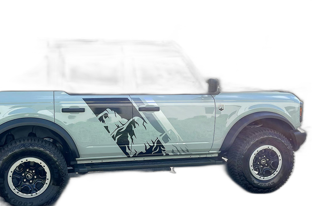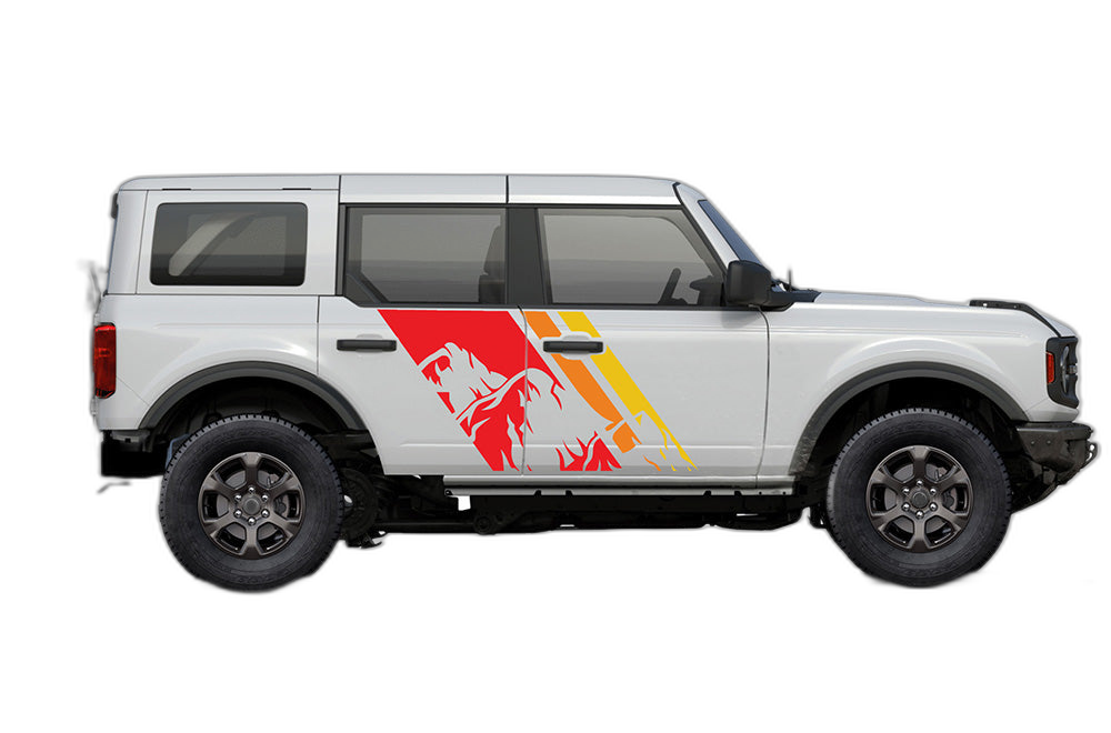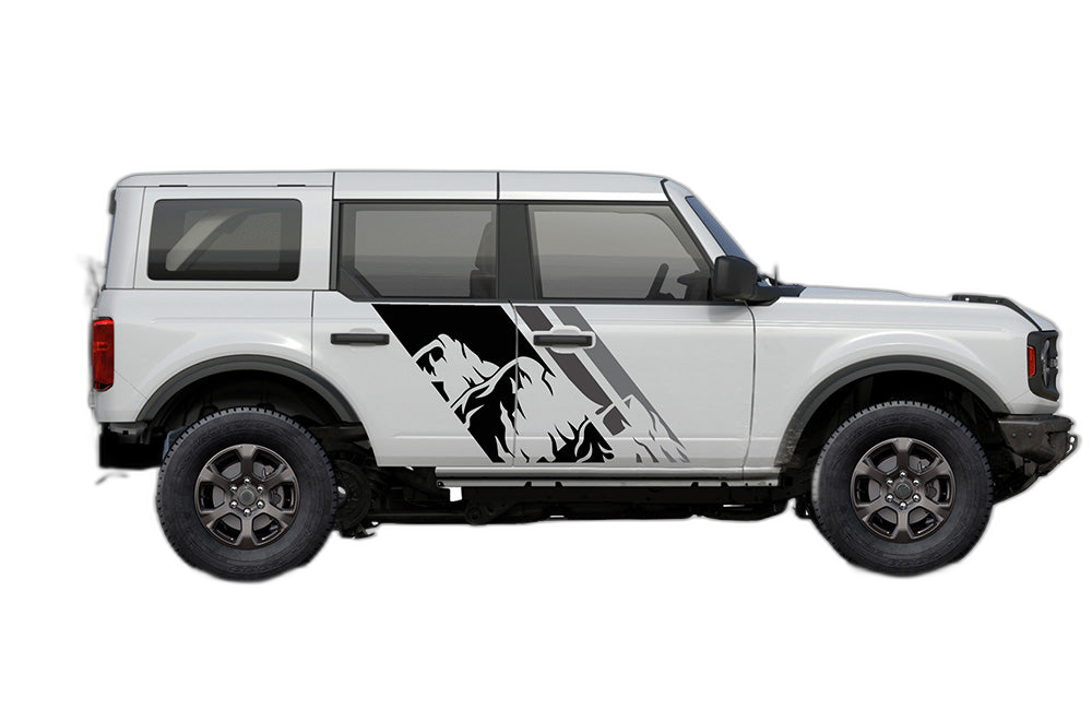 Triple mountain shape decals graphics compatible with Ford Bronco adds a bold custom styling touch to your Ford Bronco with a clean motorsport-inspired decal look. This design is intended for the listed fitment and works well for drivers who want sharper side profile styling without a full wrap. The graphic is suited for enthusiasts who value a strong visual upgrade, easy maintenance, and a finish that stands out on the street or at events. Always confirm your vehicle generation and prepare the surface correctly before installation for the best result. This product is a great option for refreshing the appearance of your build while keeping the install focused, practical, and visually aggressive.