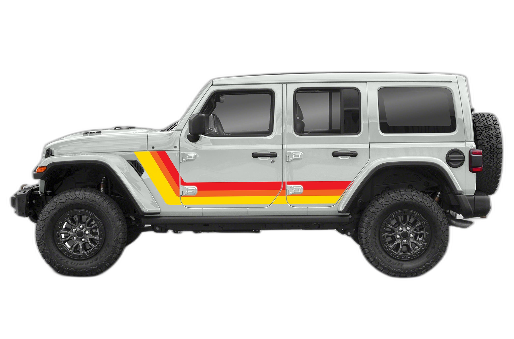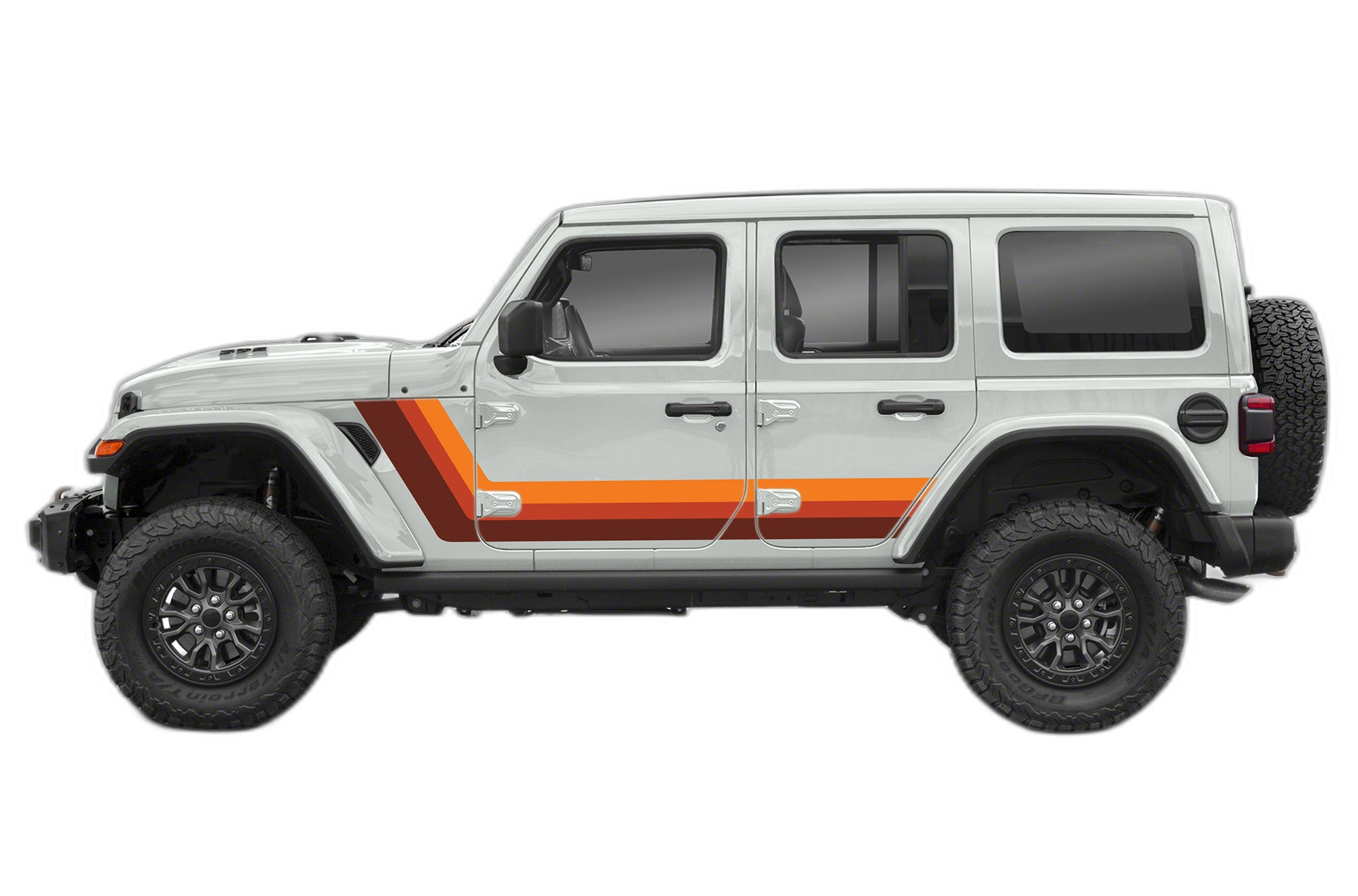 Enhance your Wrangler JL with these iconic side stripes, offering a perfect blend of modern fitment and classic retro-inspired style for any adventure.