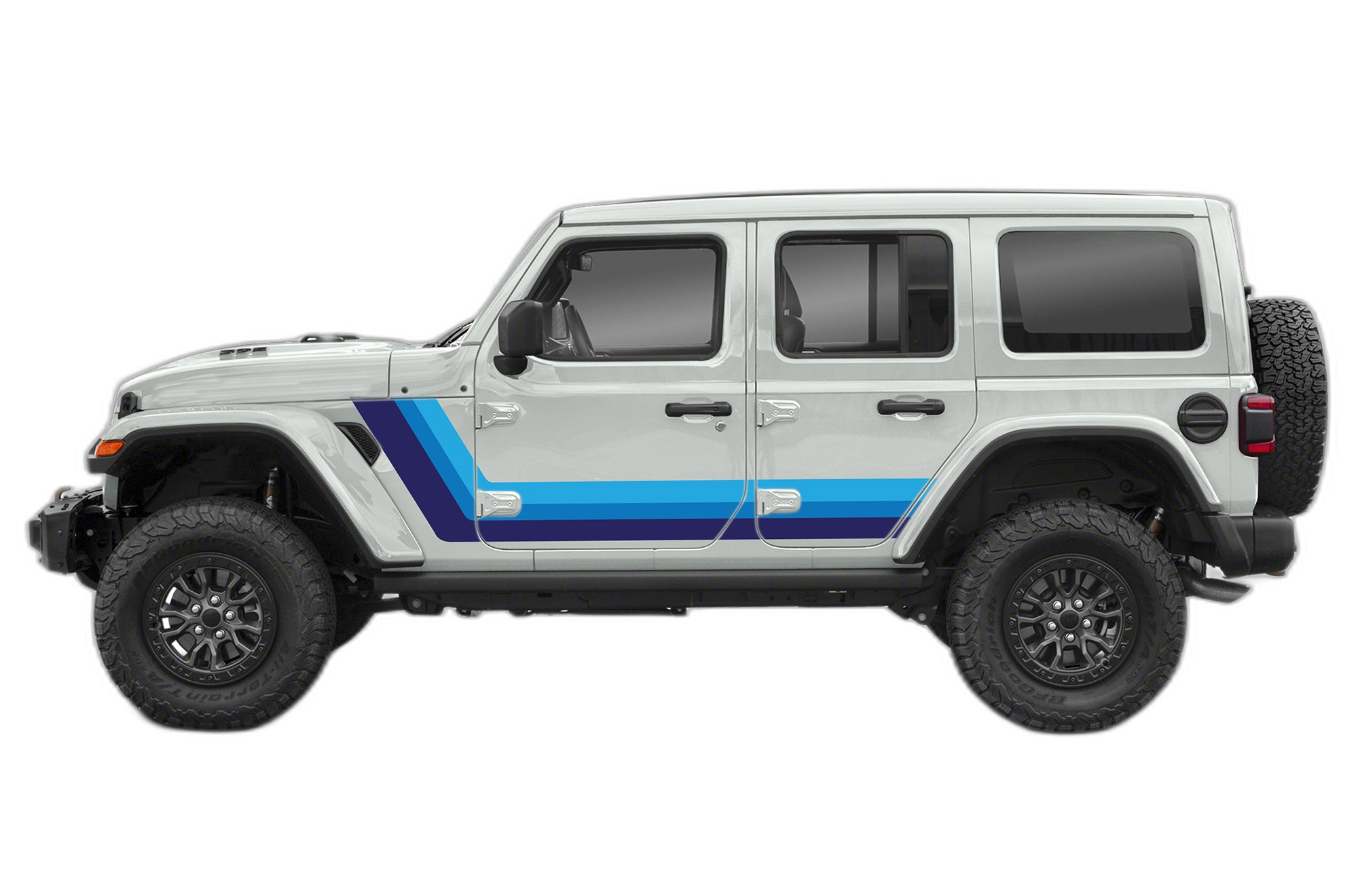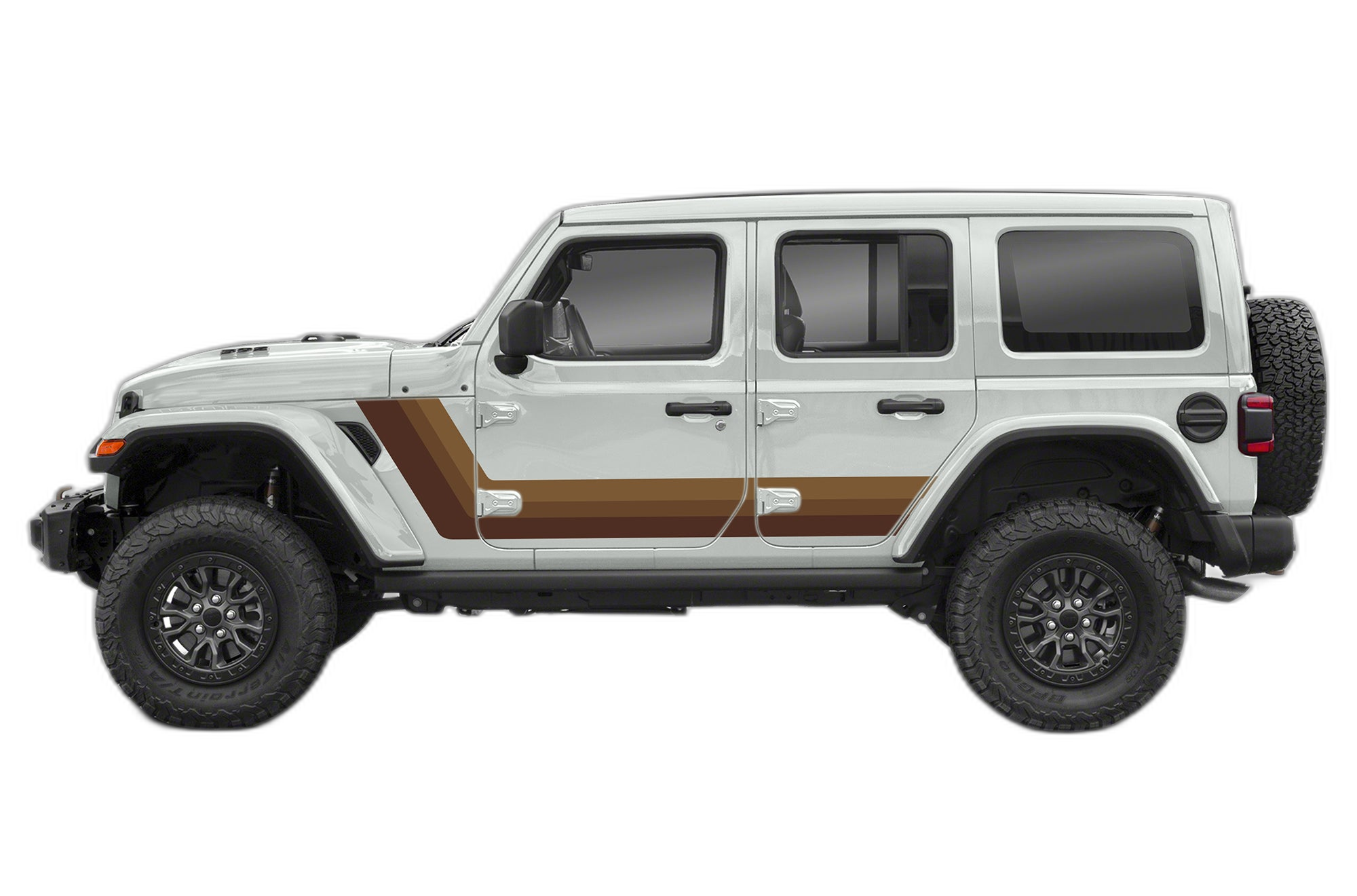 Capture the essence of classic off-road style with our triple retro side stripes. These decals are meticulously designed for the Wrangler JL, providing a vintage-inspired aesthetic that looks sharp and complements the timeless design of your Jeep.