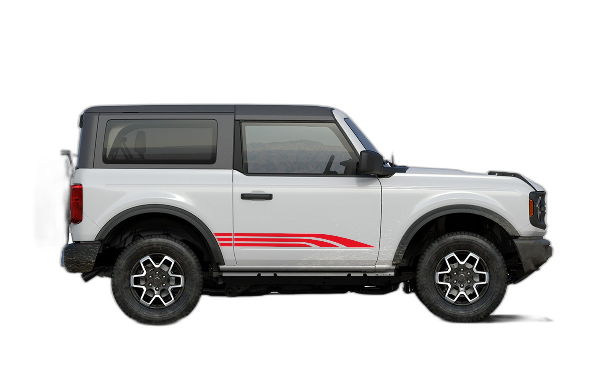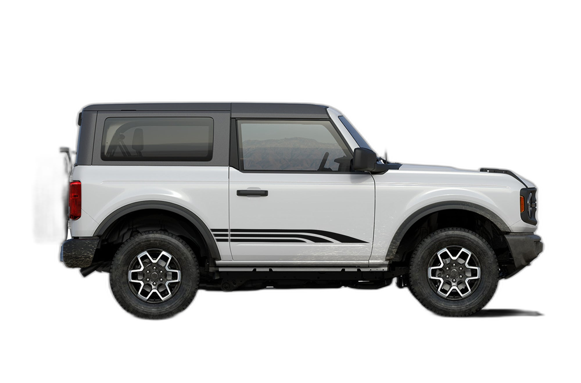 Enhance the exterior style of your 2-door Ford Bronco with these dynamic triple-way side stripes. These decals feature a three-line design that follows the body lines, providing a contemporary and athletic look that emphasizes your vehicle’s shape.
