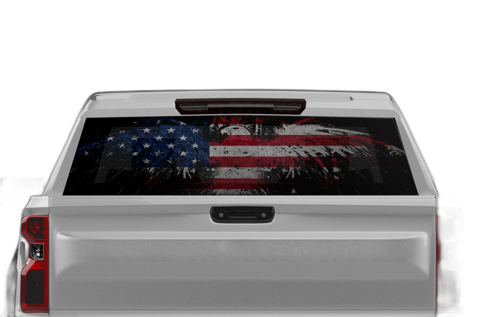 Elevate your truck’s rear profile with our US Eagle perforated window decal, designed specifically for the Chevrolet Silverado. This powerful design features an iconic eagle alongside national imagery, providing a striking, heroic aesthetic. The perforated construction allows you to see out perfectly, while those outside see a vibrant, high-quality print. This vinyl is built to last, featuring UV protection to prevent colors from fading in the harsh sun and high-grade adhesive that stands up to rain, car washes, and daily commuting. It is a simple, effective way to personalize your Silverado while maintaining cabin privacy and cooling. With its precision-cut edges, this decal is designed for easy application, ensuring a smooth, bubble-free finish. Give your truck the attention it deserves with this patriotic, durable, and highly functional window graphic, crafted to meet the high standards of Silverado owners who demand the best in quality and style.