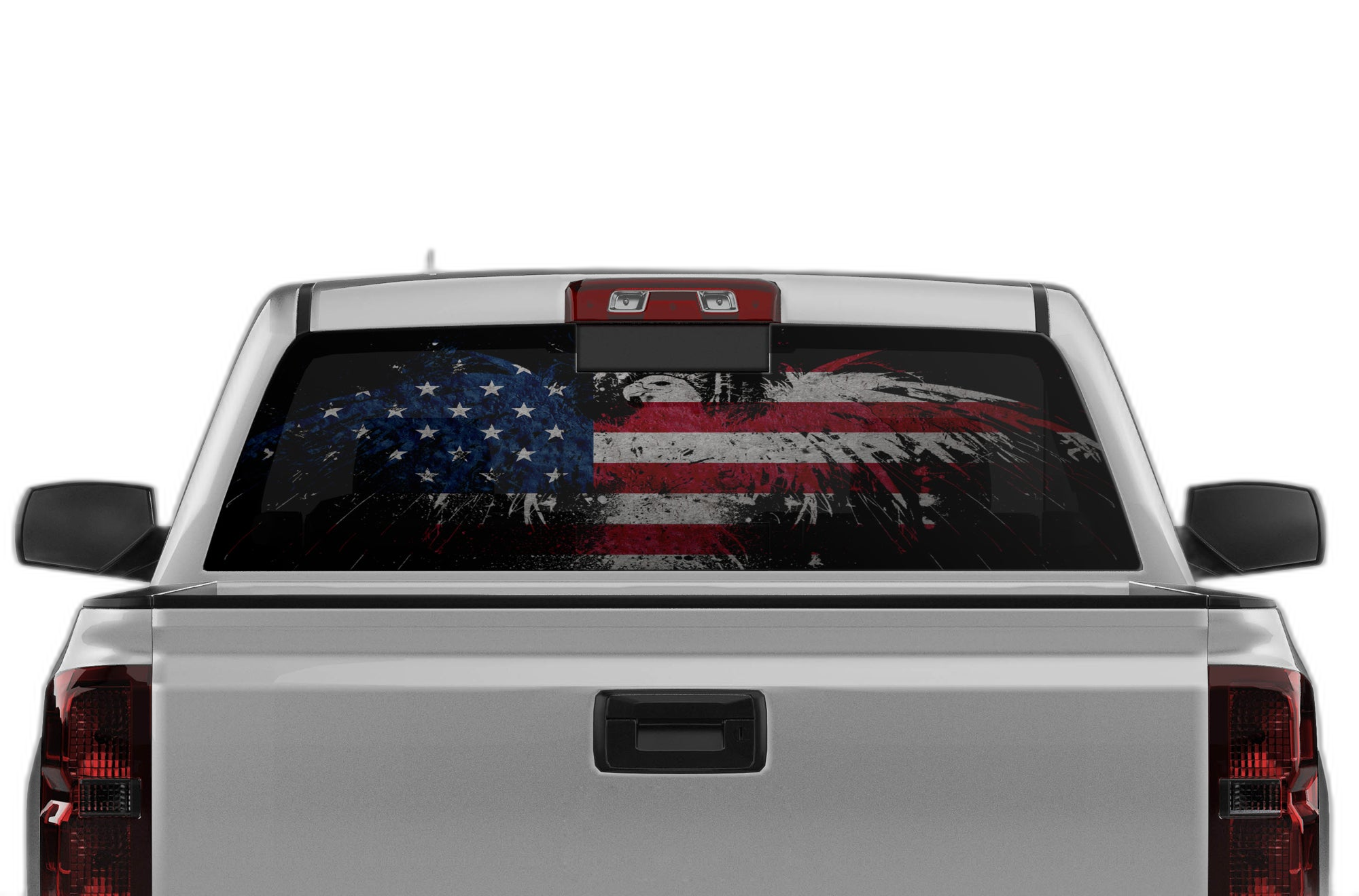 Display your patriotism with a high-detail US eagle graphic on your rear window. The perforated design offers a perfect balance between exterior aesthetics and clear vision from inside the cabin.