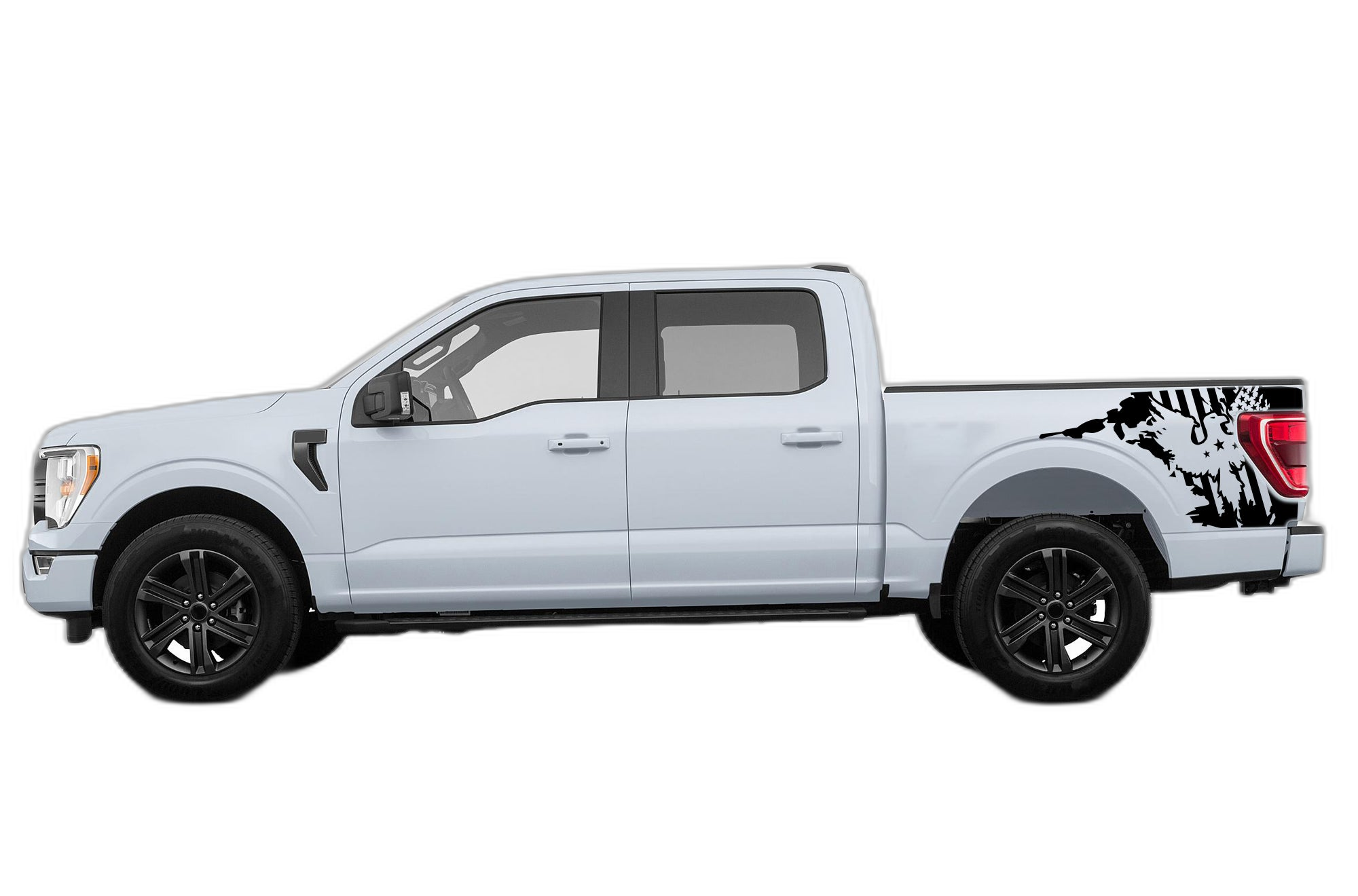 Elevate your truck’s exterior with our US eagle side bed decals, designed for versatility across multiple Ford F-150 generations. This graphic combines power and patriotism with a detailed, high-resolution eagle design that adds a bold and distinguished character to the side profile of your bed. Manufactured from premium, automotive-grade vinyl, these decals are engineered for long-term outdoor performance, resisting fading, moisture, and road contaminants. They remain sharp and vibrant through even the toughest conditions, from intense sunlight to winter snow. The precise cut allows for a professional installation that complements the natural lines of your F-150 bed. Whether you want to showcase your spirit or simply upgrade your truck’s style, these eagle decals are the perfect choice for a custom-wrapped look. Invest in durable, eye-catching graphics that reflect your personality and style while ensuring your F-150 stands out. Transform your truck today with this long-lasting, visually stunning side bed graphic.