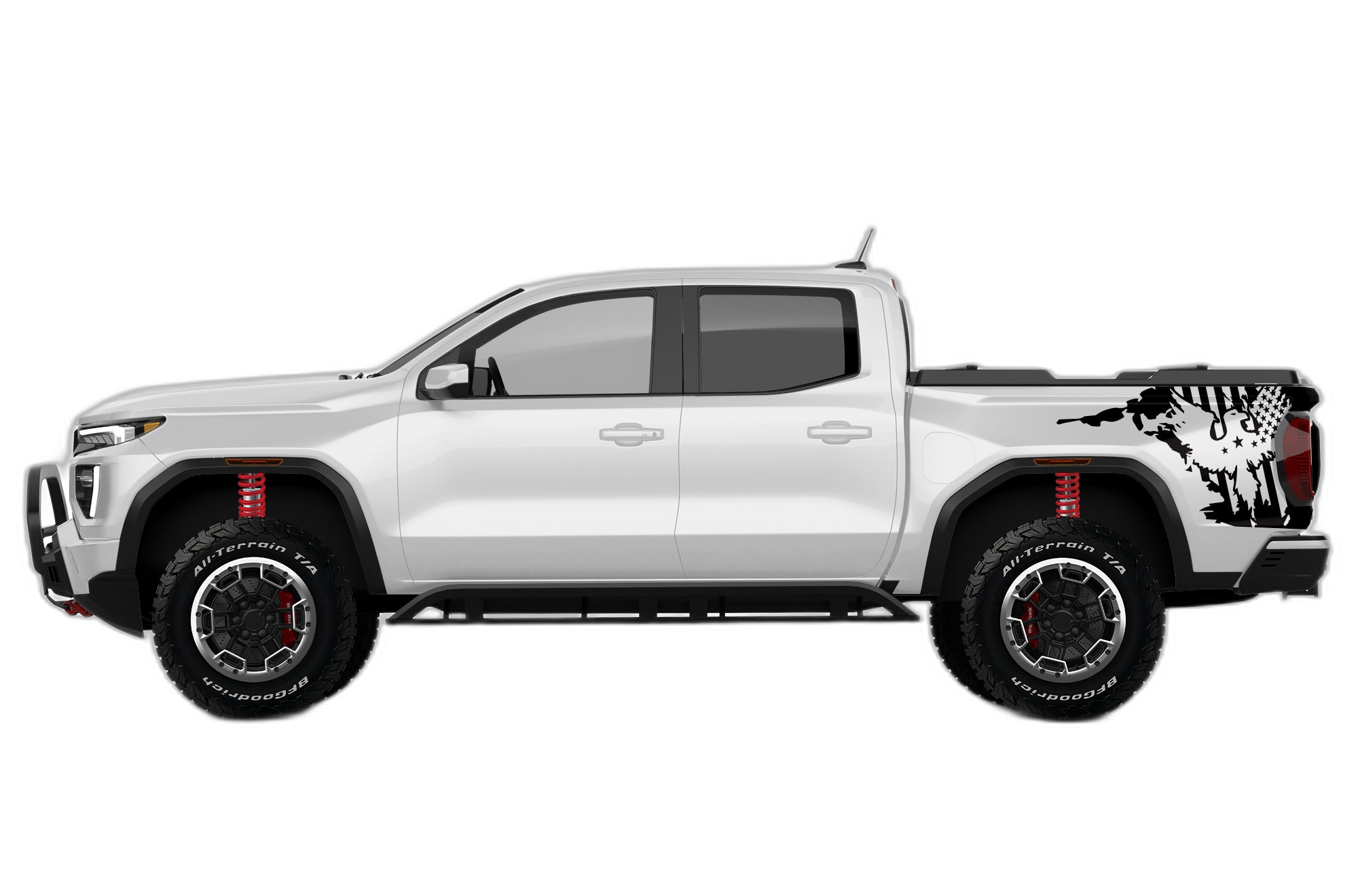 US eagle side bed decals graphics compatible with GMC Canyon adds a bold custom styling touch to your GMC Canyon with a clean motorsport-inspired decal look. This design is intended for the listed fitment and works well for drivers who want sharper side profile styling without a full wrap. The graphic is suited for enthusiasts who value a strong visual upgrade, easy maintenance, and a finish that stands out on the street or at events. Always confirm your vehicle generation and prepare the surface correctly before installation for the best result. This product is a great option for refreshing the appearance of your build while keeping the install focused, practical, and visually aggressive.