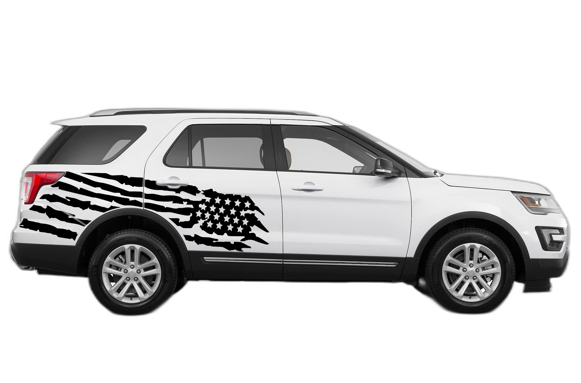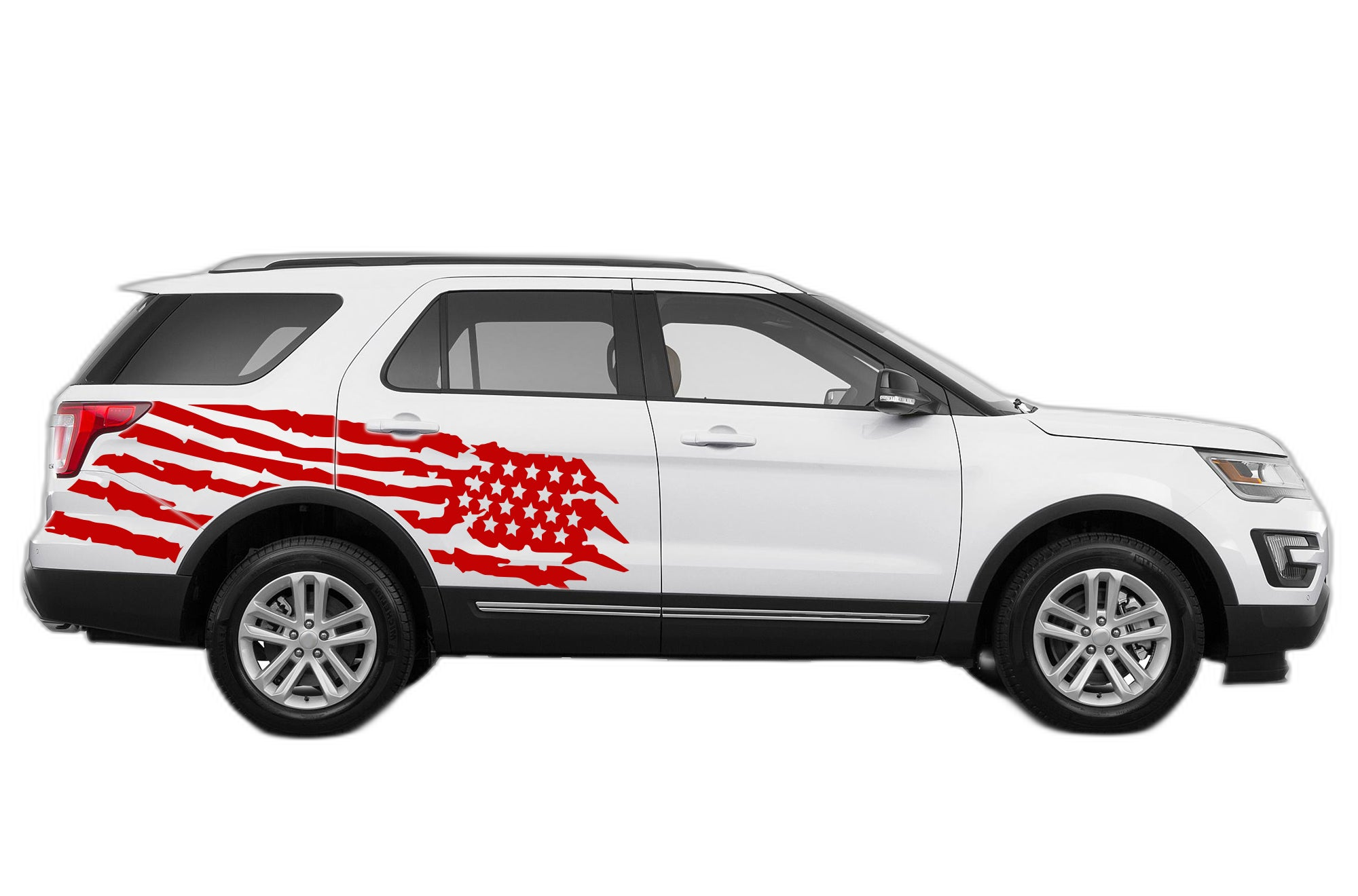 Display your American pride on your Ford Explorer with our high-quality US flag side graphics. Specifically designed for 5th and 6th generation models (2011-2019), these decals provide a clean, patriotic look that integrates perfectly with the vehicle’s body lines. Crafted from premium, outdoor-grade vinyl, these graphics are engineered to handle long-term exposure to sun, rain, and road debris without peeling or fading. The high-resolution print ensures the flag’s design remains sharp and vibrant for years. Easy to install and durable enough for all-weather driving, this kit allows you to add a touch of personality and pride to your Explorer with ease. Whether you’re heading out on a road trip or just running errands around town, these side decals make a strong, patriotic statement. Experience the perfect mix of high-end quality and bold style with this American flag graphic kit, designed to keep your Ford Explorer looking great for the long haul.