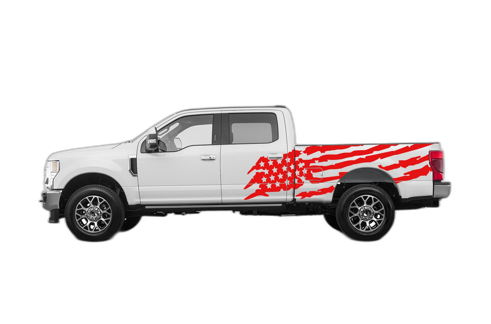 Show your patriotism in style with our US Flag side decals, designed specifically for the 2017-2022 Ford F250. These iconic flag graphics add a bold, heroic touch to your 4th or 5th Gen Ford truck, perfect for those who value both style and national pride. Each decal is precision-cut from top-tier, weather-resistant automotive vinyl, ensuring it holds up against harsh environmental elements including intense UV rays and road debris. The decals provide a clean, professional finish that enhances your F250’s factory aesthetic. Installation is simple, making this an excellent DIY project to customize your vehicle in an afternoon. Durable and eye-catching, these graphics ensure your truck looks great for the long haul. Upgrade your F250 today with our high-quality US Flag side decals and make a powerful statement that celebrates both your vehicle and your love for the country.