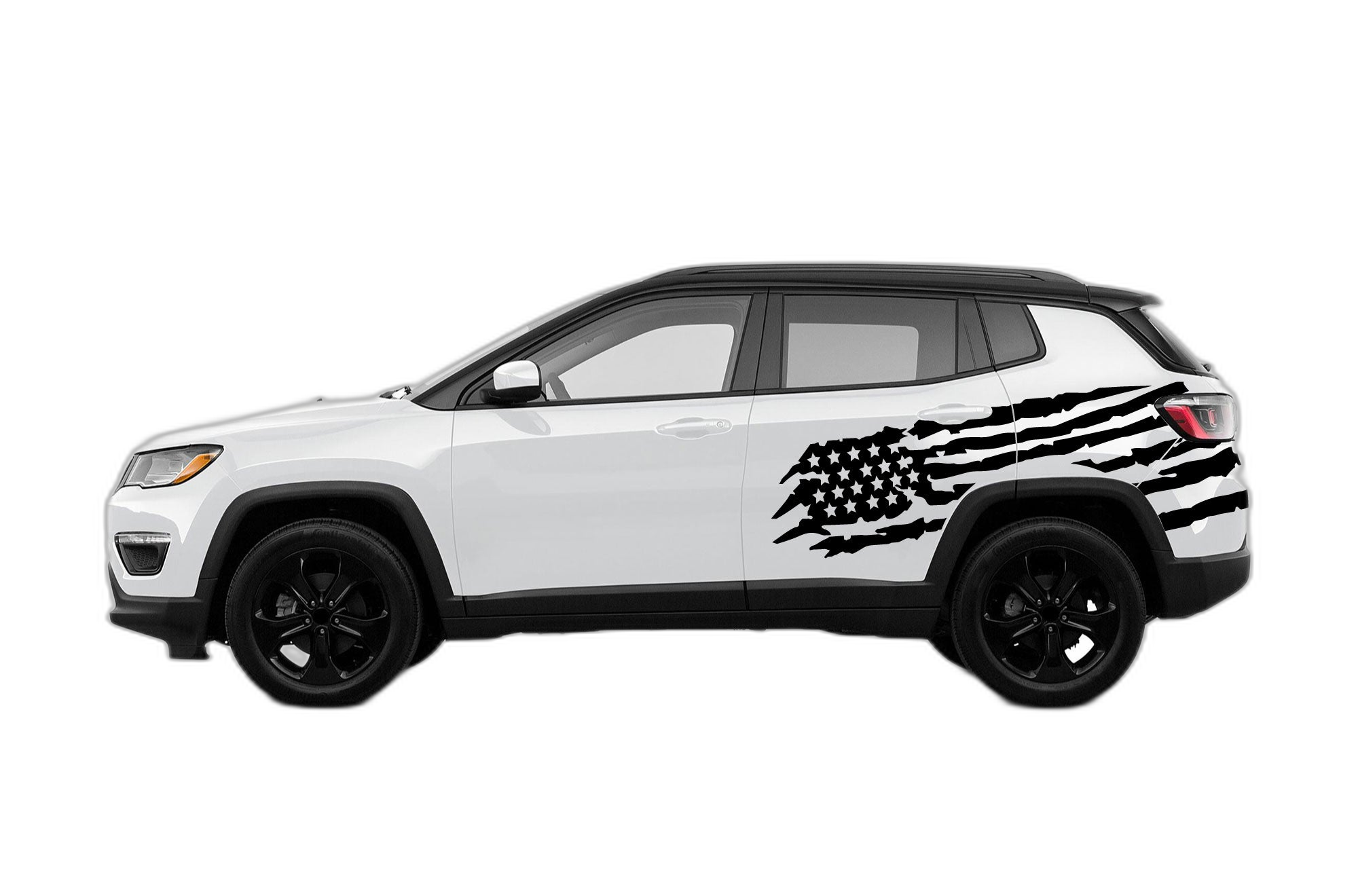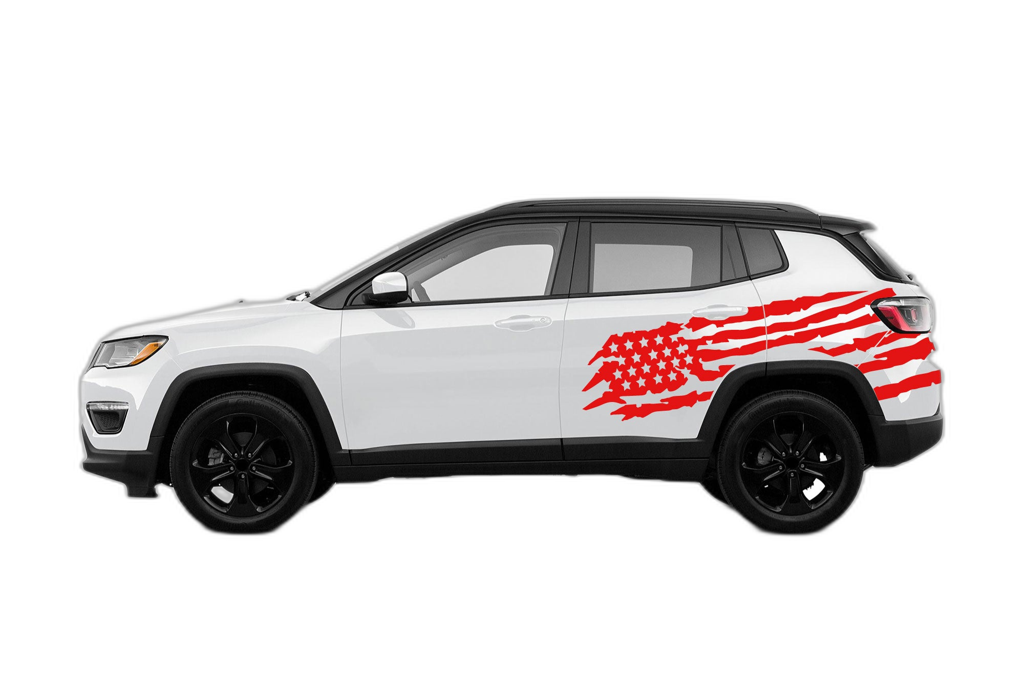 Add a touch of patriotism to your vehicle’s profile with these custom US flag side graphics. Engineered to complement the modern body style of the Jeep Compass, these decals provide a clean and bold custom look.