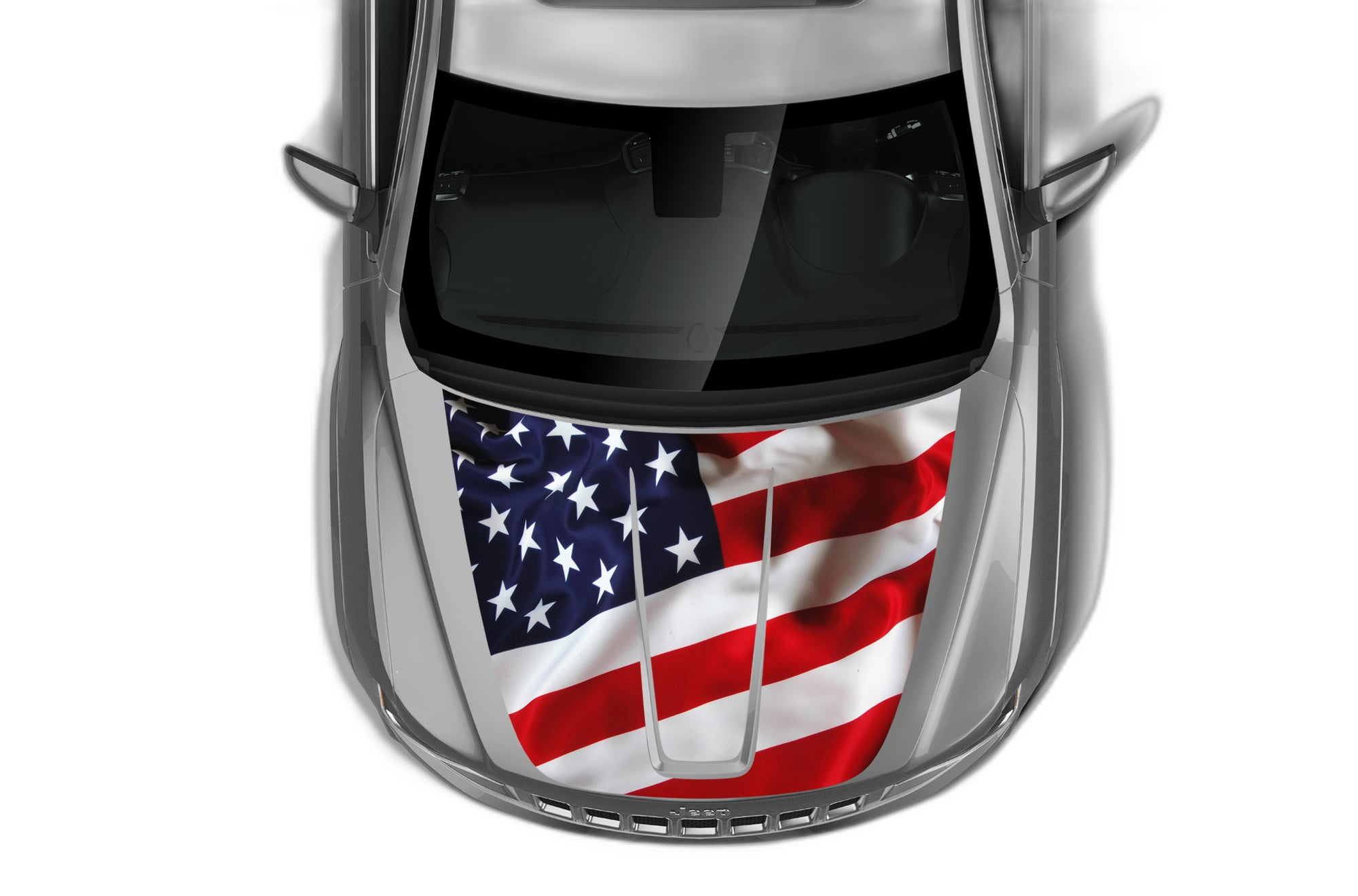 USA flag print hood graphics decals compatible with Jeep Grand Cherokee 2011-2021