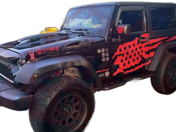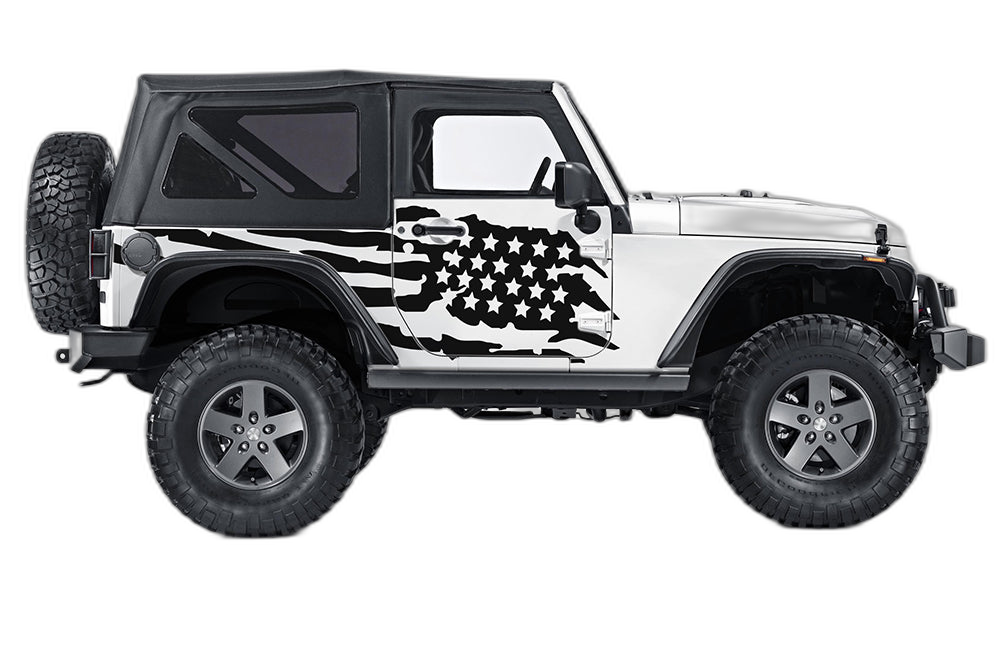 Show your national pride with our USA flag side decals, compatible with the Jeep Wrangler JL, JK, and TJ generations. These graphics provide a classic, patriotic look that enhances the exterior of your Jeep. Crafted from professional-grade automotive vinyl, these decals are designed to handle the harshest environments, including direct sun, rain, and trail dust, without losing their vibrant color or sharpness. The precision-cut design ensures a clean and perfect fit for your specific Wrangler model, making application straightforward and providing a professional, custom finish. Whether you’re heading off-road or cruising locally, these flag decals make a strong, bold visual statement about your values and your favorite vehicle. Durable, high-quality, and easy to apply, these decals are the perfect choice for any Jeep enthusiast wanting to add a patriotic and lasting touch to their ride. Personalize your Jeep today with this essential, high-impact patriotic accessory.