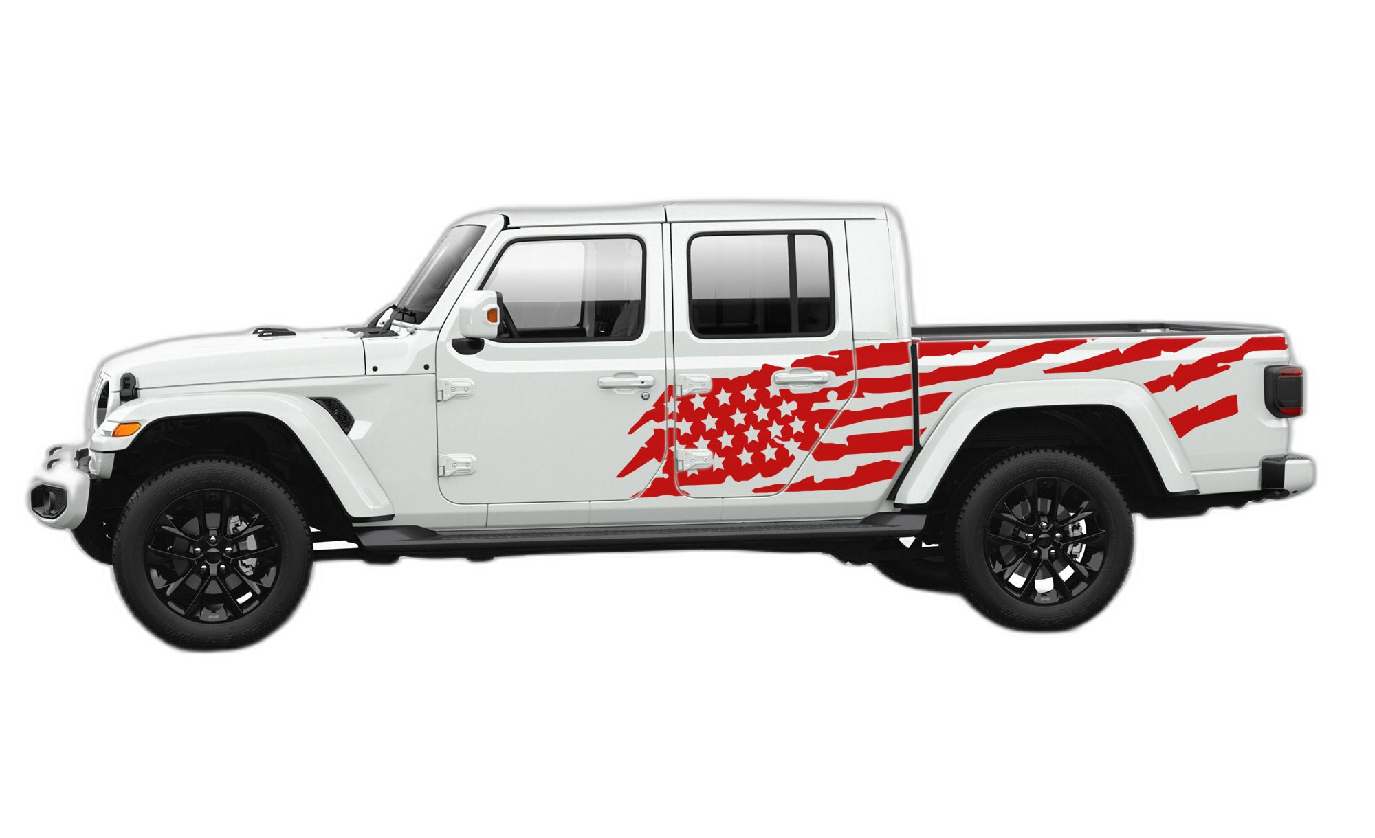 Showcase your American pride with our USA flag side graphics, perfectly compatible with your Jeep Gladiator JT. These decals offer a bold and timeless way to customize your truck, instantly giving it a patriotic flair that is recognized and respected. Manufactured from high-end automotive vinyl, these graphics are designed to resist fading under harsh UV sunlight and remain securely adhered through rain, snow, and rough off-road adventures. The precision-cut design ensures an easy, professional installation that follows the lines of your Gladiator perfectly, providing a seamless and factory-custom look. Beyond their aesthetic value, these decals provide added durability to your side panels, offering a layer of protection against minor road debris and scratches. If you want to elevate your vehicle’s style with a classic, high-impact design, these USA flag graphics are the perfect choice. Upgrade your truck today and hit the road with a look that shows off your personality and patriotism with pride.
