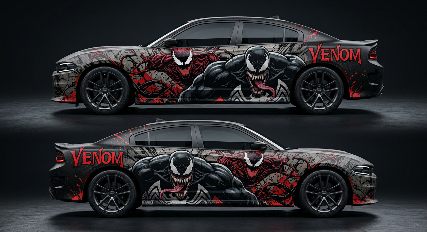 ๐Ÿ•ท๏ธ๐Ÿ‘น Venom Carnage Collage Car Wrap – Symbiotes