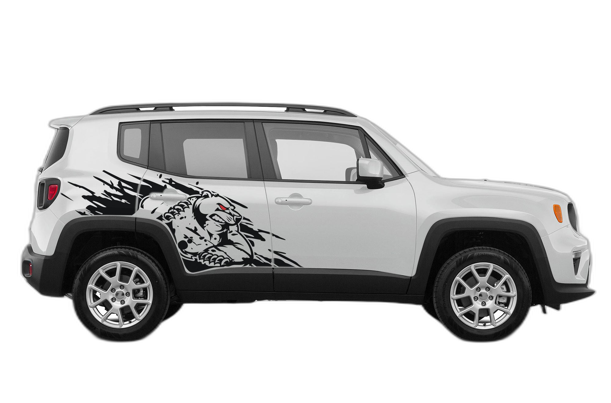 Show your untamed spirit with our ‘Wild Bear’ door graphics for the Jeep Renegade. This bold, wildlife-inspired design is perfect for those who want their vehicle to carry a sense of strength and adventure. Our high-performance vinyl is built to resist environmental damage, including UV fading, water, and debris, ensuring your ‘Wild Bear’ graphic remains crisp and clean. The precision-cut makes for a smooth, professional-looking DIY installation on your Renegade’s doors. This is an excellent way to add personality and a unique, rugged edge to your SUV. Whether you are trekking through the woods or navigating city streets, this decal ensures your Jeep Renegade catches the eye. Durable, stylish, and built to last, our vinyl graphics are a premium choice for any Jeep owner. Upgrade your exterior with a touch of the wild and enjoy a custom look that reflects your adventurous soul and love for nature.