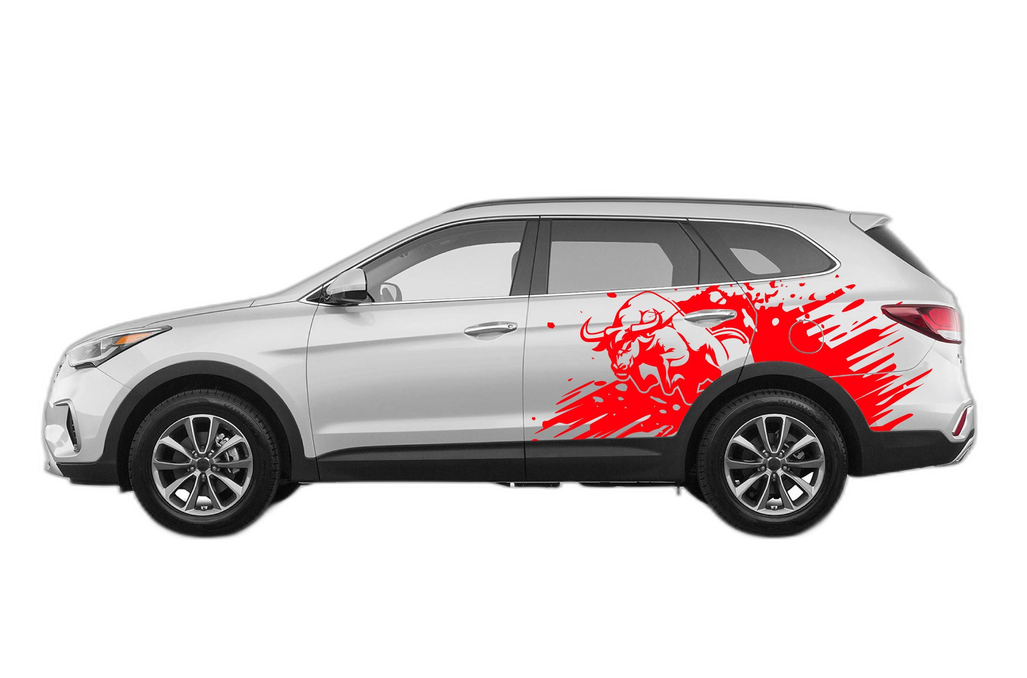 Unleash the raw energy of the wild with our bull splash graphics for the 2019-2023 Hyundai Santa Fe. This aggressive, high-detail design is perfect for those who want their vehicle to reflect strength and power. Manufactured from premium, automotive-grade vinyl, these decals are built to withstand the toughest road conditions, resisting fading, peeling, and weather-related damage. The splash artwork is precisely cut to flow with the body panels of the Santa Fe, ensuring a professional, custom-wrapped aesthetic. Easy to apply and incredibly durable, this graphic is the ultimate accessory for the modern driver looking for a bold and unique look. Whether you’re on a daily commute or a weekend adventure, this high-quality decal will keep your SUV looking sharp, powerful, and ready for anything. Elevate your exterior today with this dynamic design.