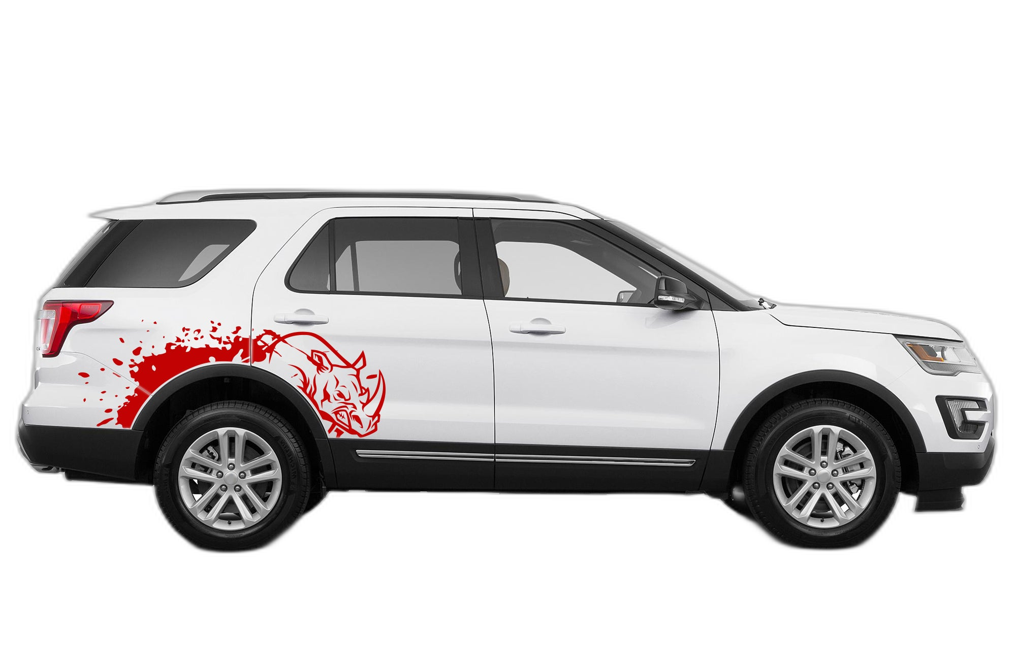 Stand out with this aggressive rhino-themed graphic set. These side decals are designed to fit the Ford Explorer 5th Gen, adding a dynamic, custom aesthetic to your vehicle’s sides.