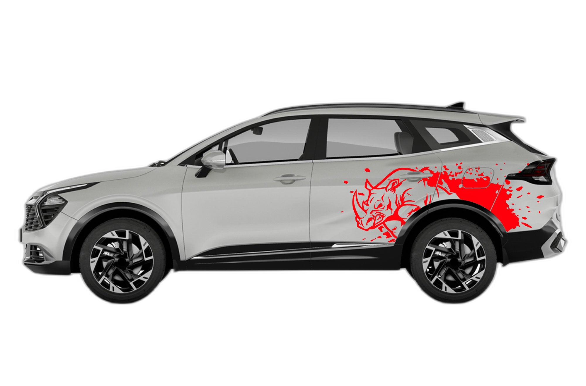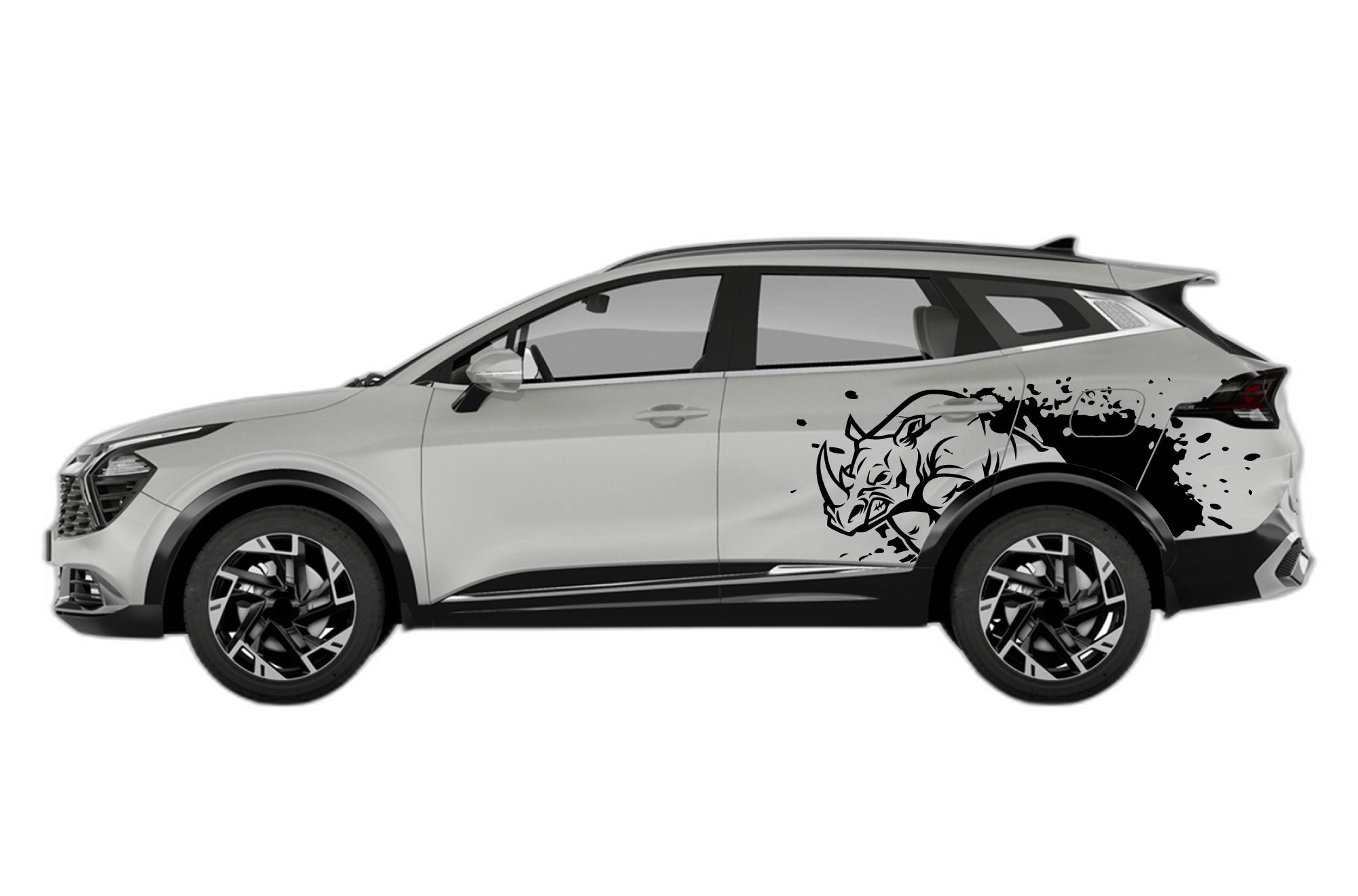 Introduce an element of raw power to your 5th Generation Kia Sportage with our Wild Rhino splash side decals. Designed to flow with the sharp body creases of the modern Sportage, this graphic adds a layer of toughness to your vehicle’s exterior. These decals are printed on high-performance automotive vinyl that resists peeling, cracking, and fading, ensuring they look great for years. The detailed rhino splash motif suggests a vehicle built for adventure and strength. Installation is designed to be user-friendly, allowing you to achieve a custom wrap look without the professional price tag. This decal kit is ideal for Sportage owners who want to break away from the standard look and showcase a bold, untamed style. Durable enough for any terrain and stylish enough for the urban jungle, these graphics are the perfect addition to your Kia.
